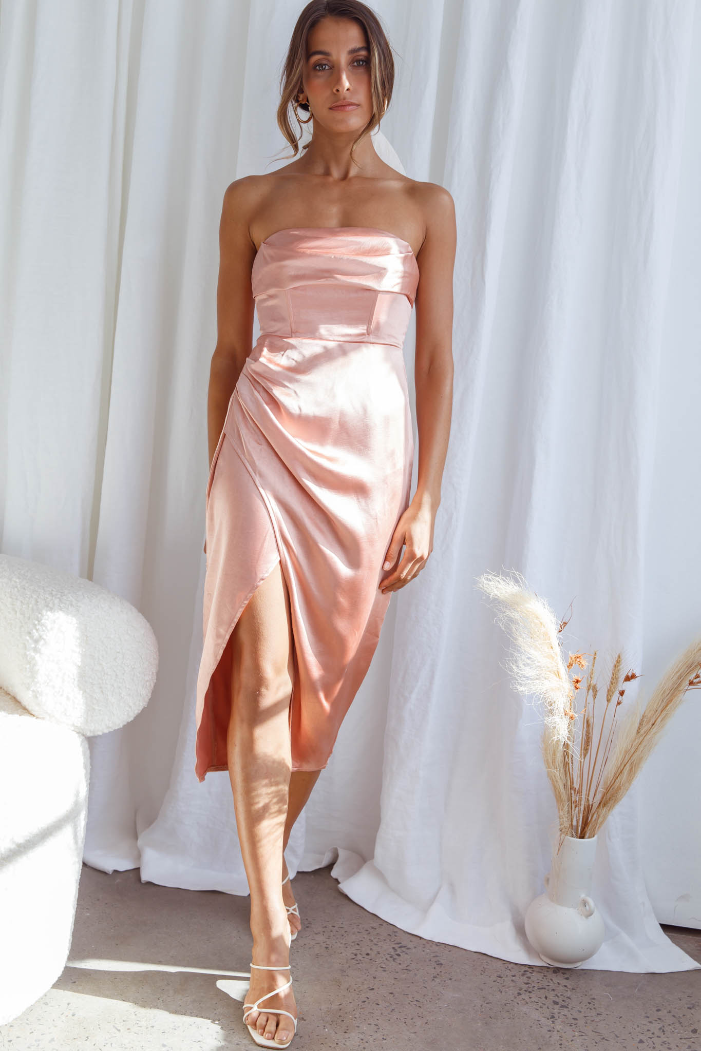 Dolce Vita Cowl Bust Strapless Midi Dress Apricot