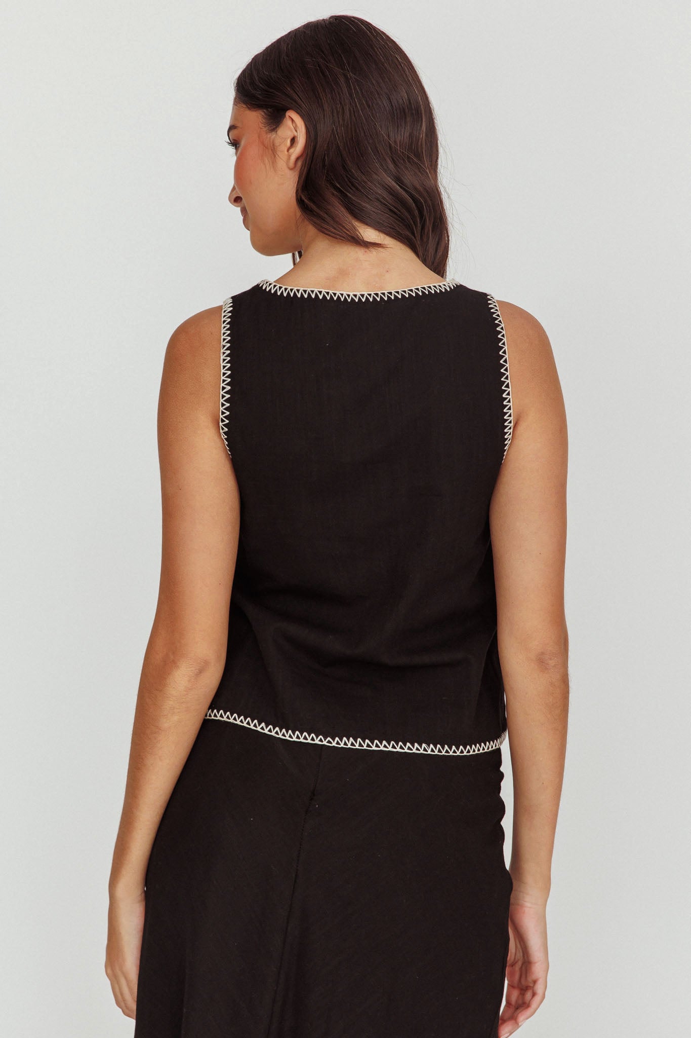 Dose Of Sunshine Blanket Stitch Vest Top Black
