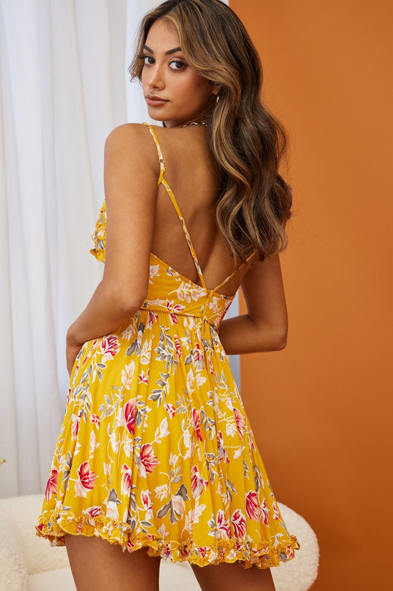 You'll feel like running through a field of wildflowers in our dreamy Dote On Me dress. It features romantic frill trim details, a V-neckline, adjustable shoulder straps and a loose, A-line skirt that's perfect for twirling the day away. The back is low and strappy and will definitely turn heads. Team it with tan sandals and a basket bag for a simple but sweet look.