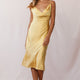 Give them a reason to look twice in our stunning Double Take satin dress. Featuring a sexy, V-design low back, adjustable spaghetti straps, midi length and our favorite part, the elegant V-neckline with a draped cowl-look design over the bust. Wear it to a cocktail lounge with your bestie teamed with delicate jewelry, strappy heels and a martini and get ready for heads to turn.