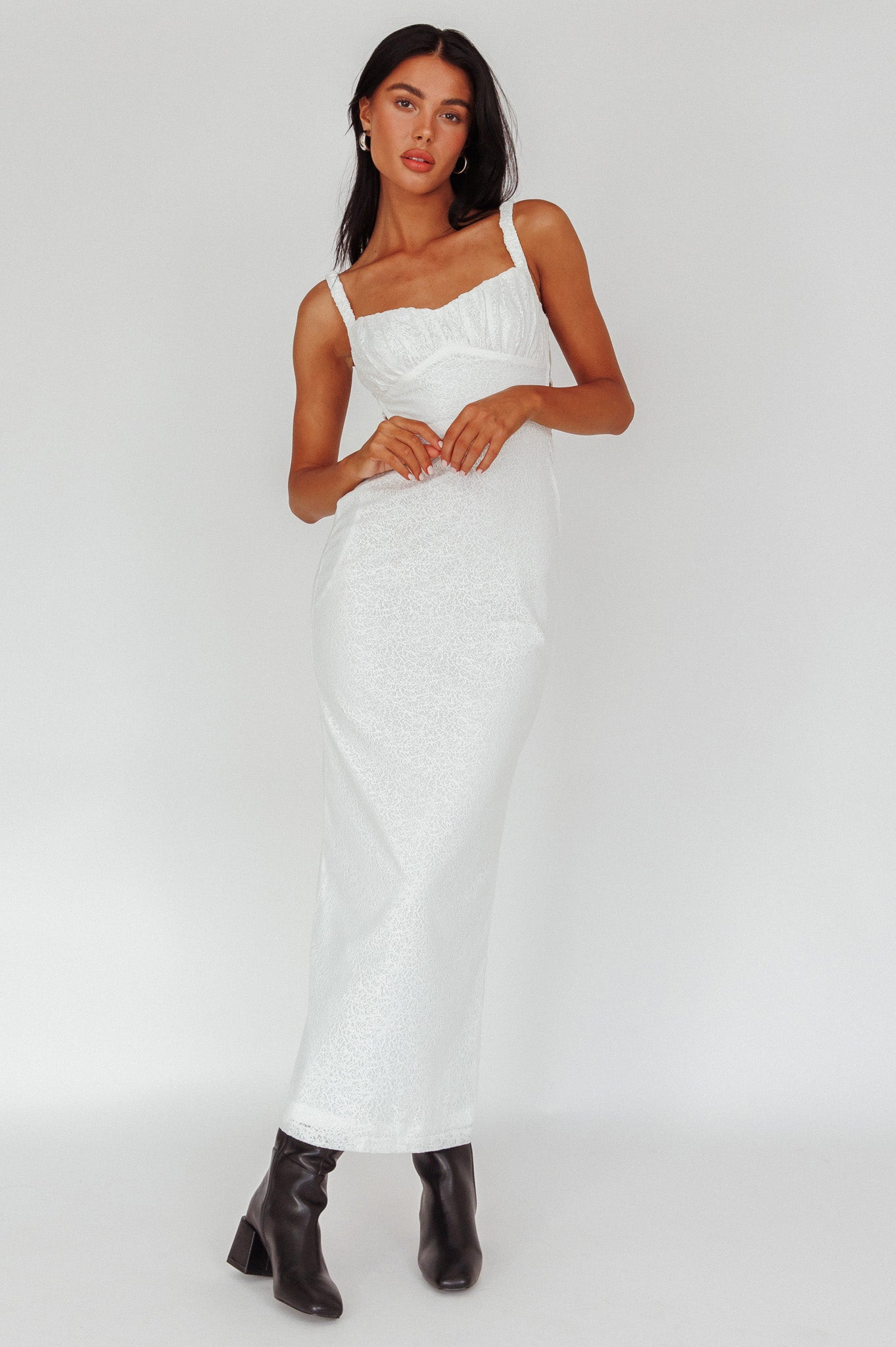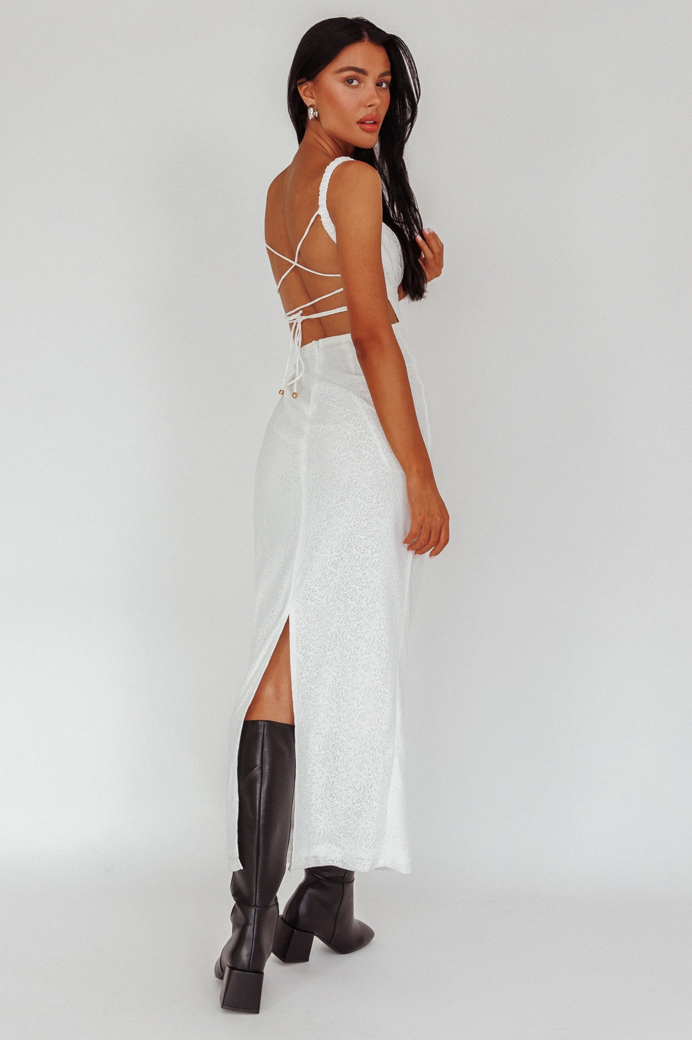 Dream Crush Lace-Up Back Mesh Overlay Midi Dress White