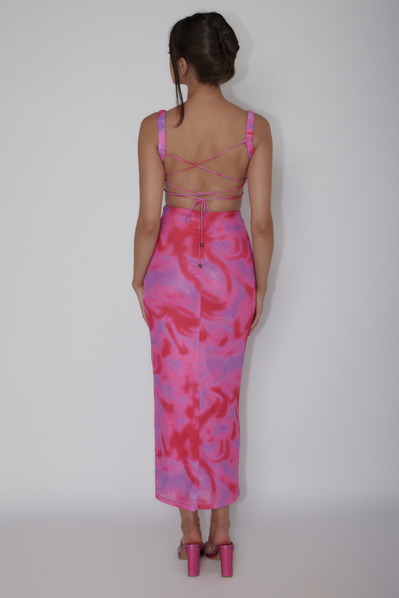 Dream Crush Lace-Up Back Side Split Maxi Dress Swirl Pink