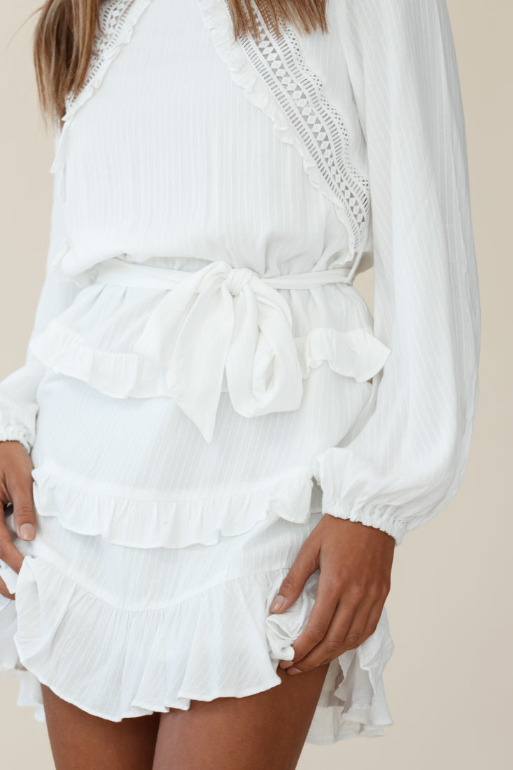 Get ready to turn heads in our pretty Dusk dress. We are so in love with the gorgeous crochet and frill details. We love that this dress can go from day to night with a change of shoes. Perfect for Sunday brunch with your bffs or throw on some strappy nude heels and a bronze, smokey eye for a chic evening look.