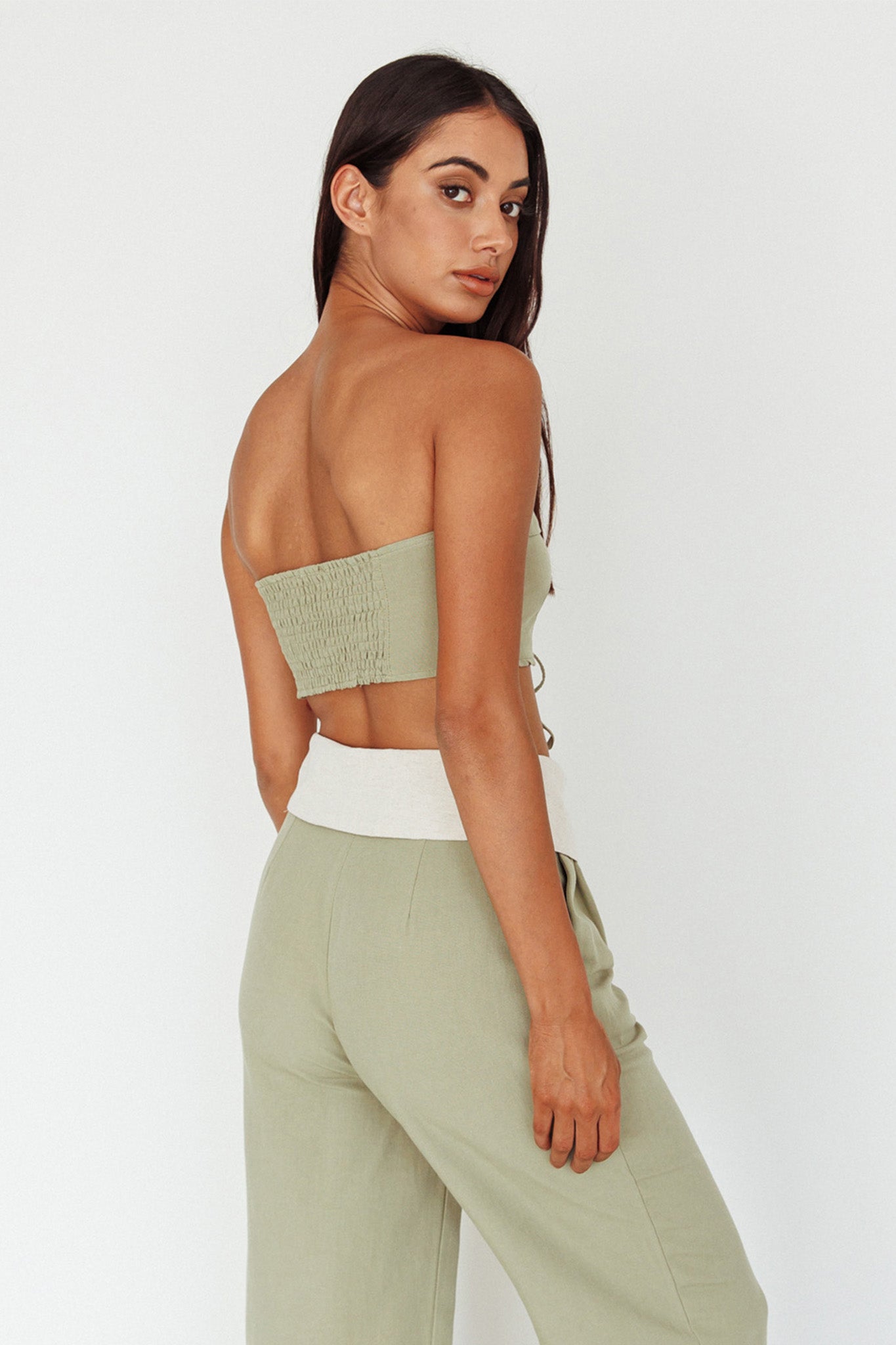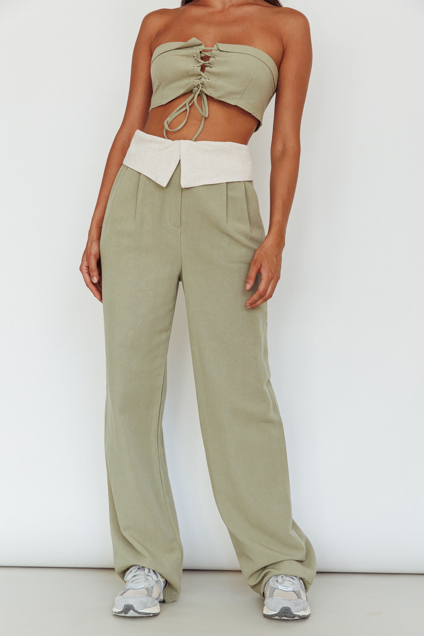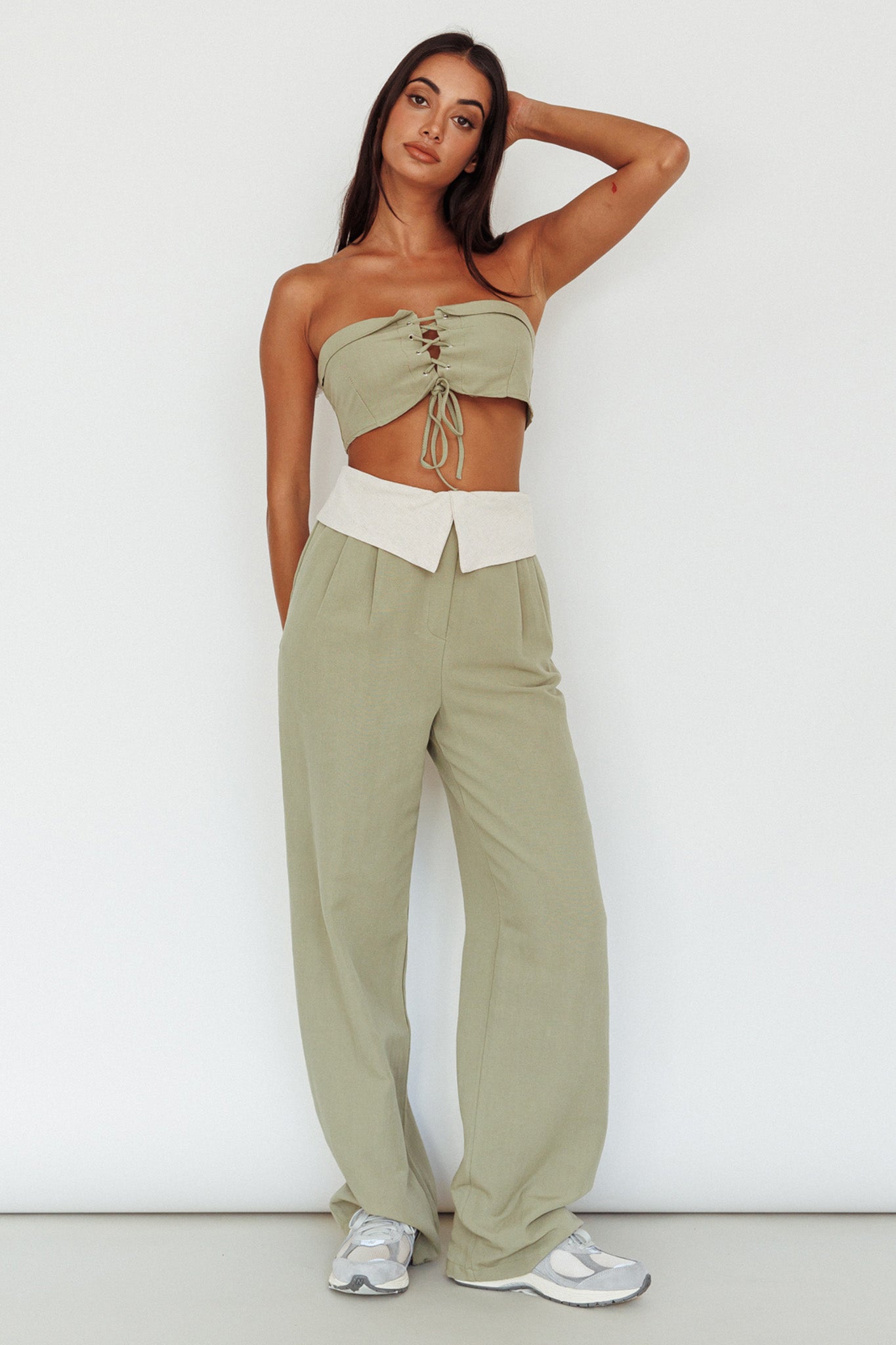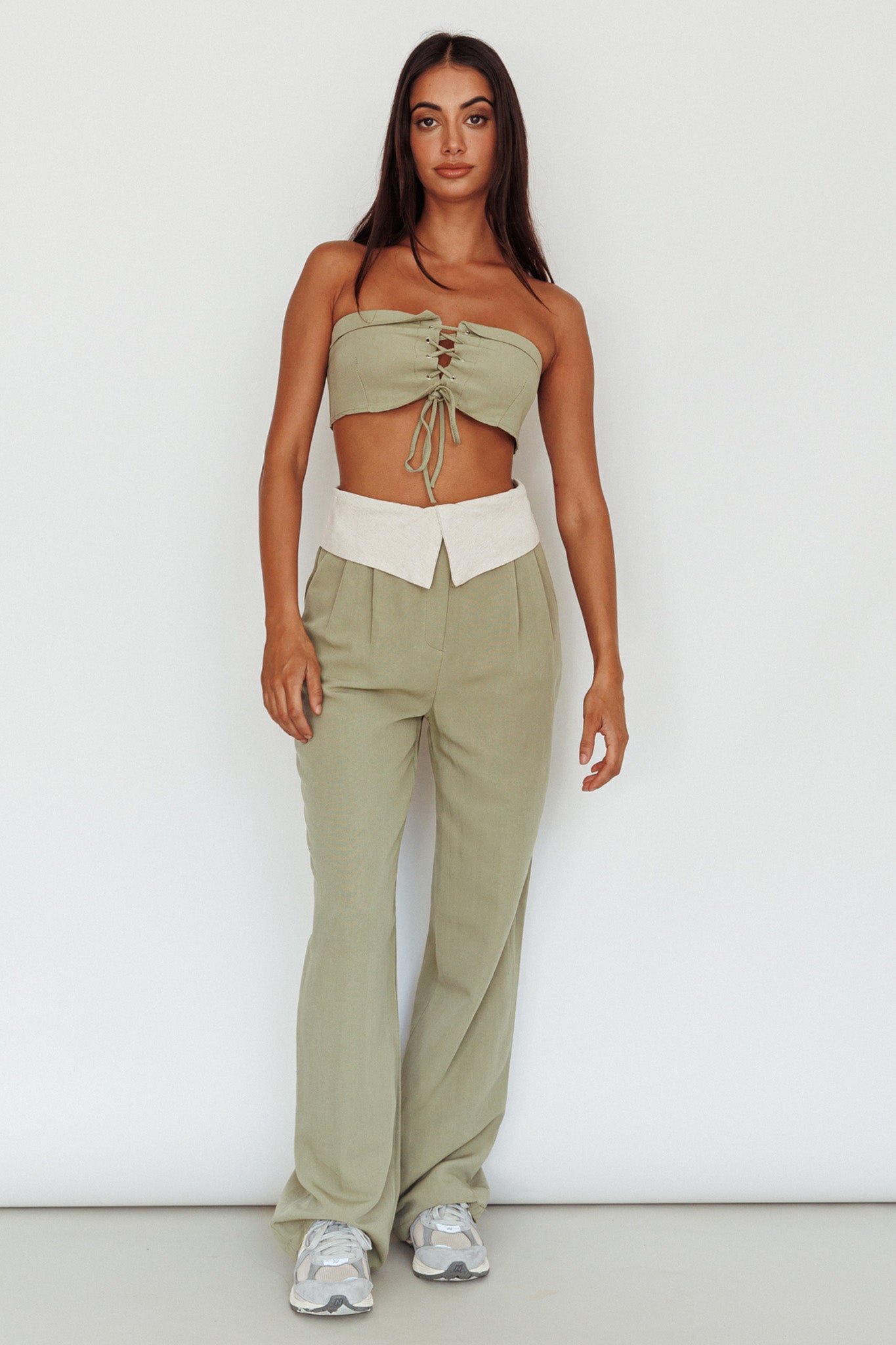 East Village Lace-Up Crop Top Sage