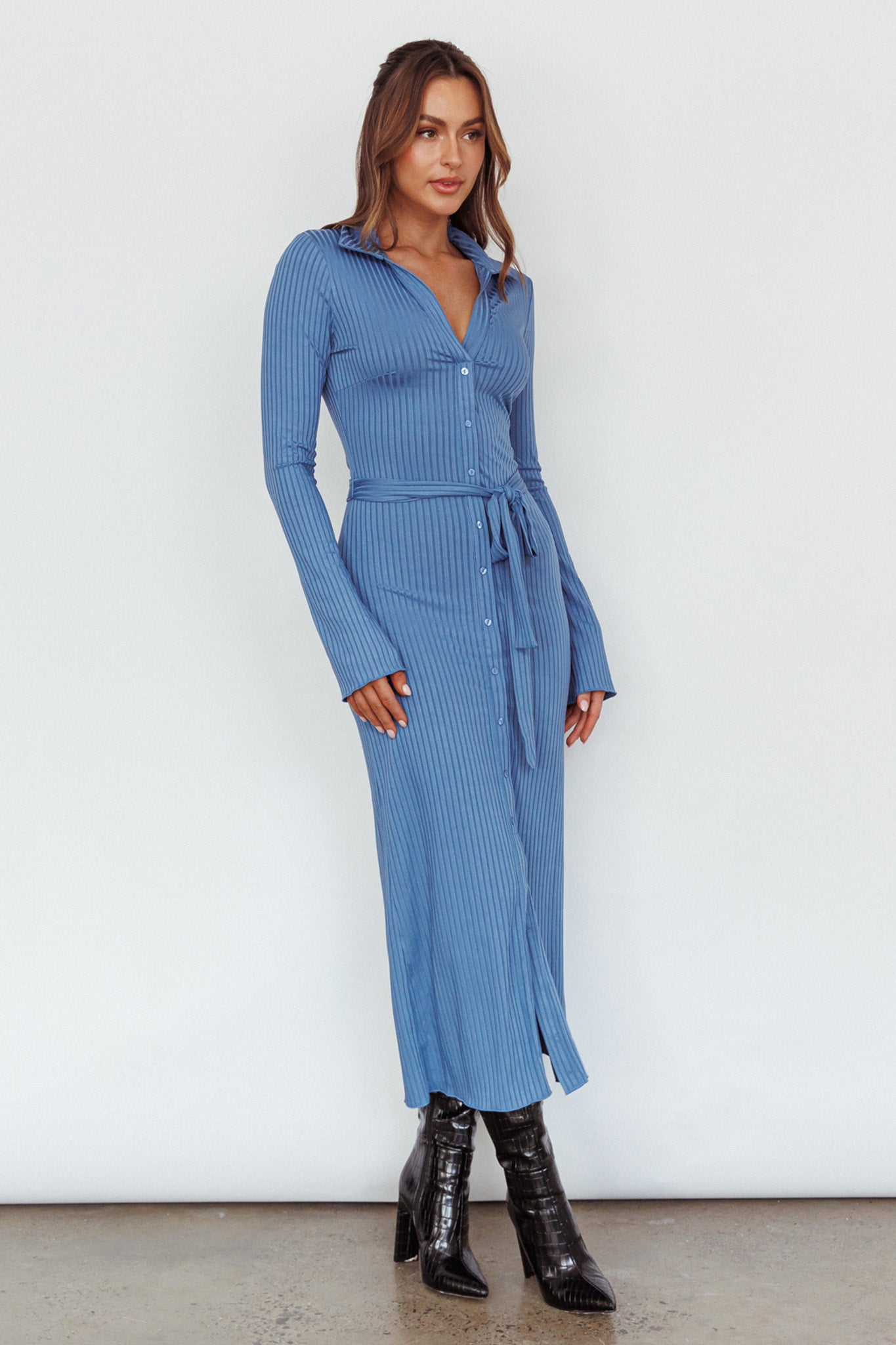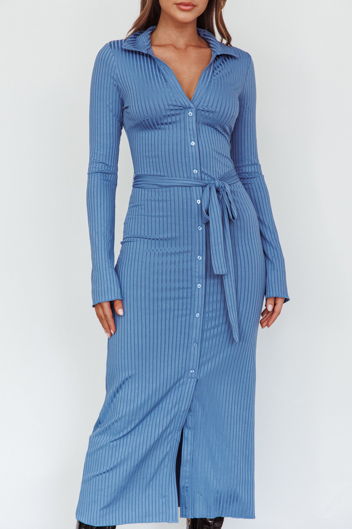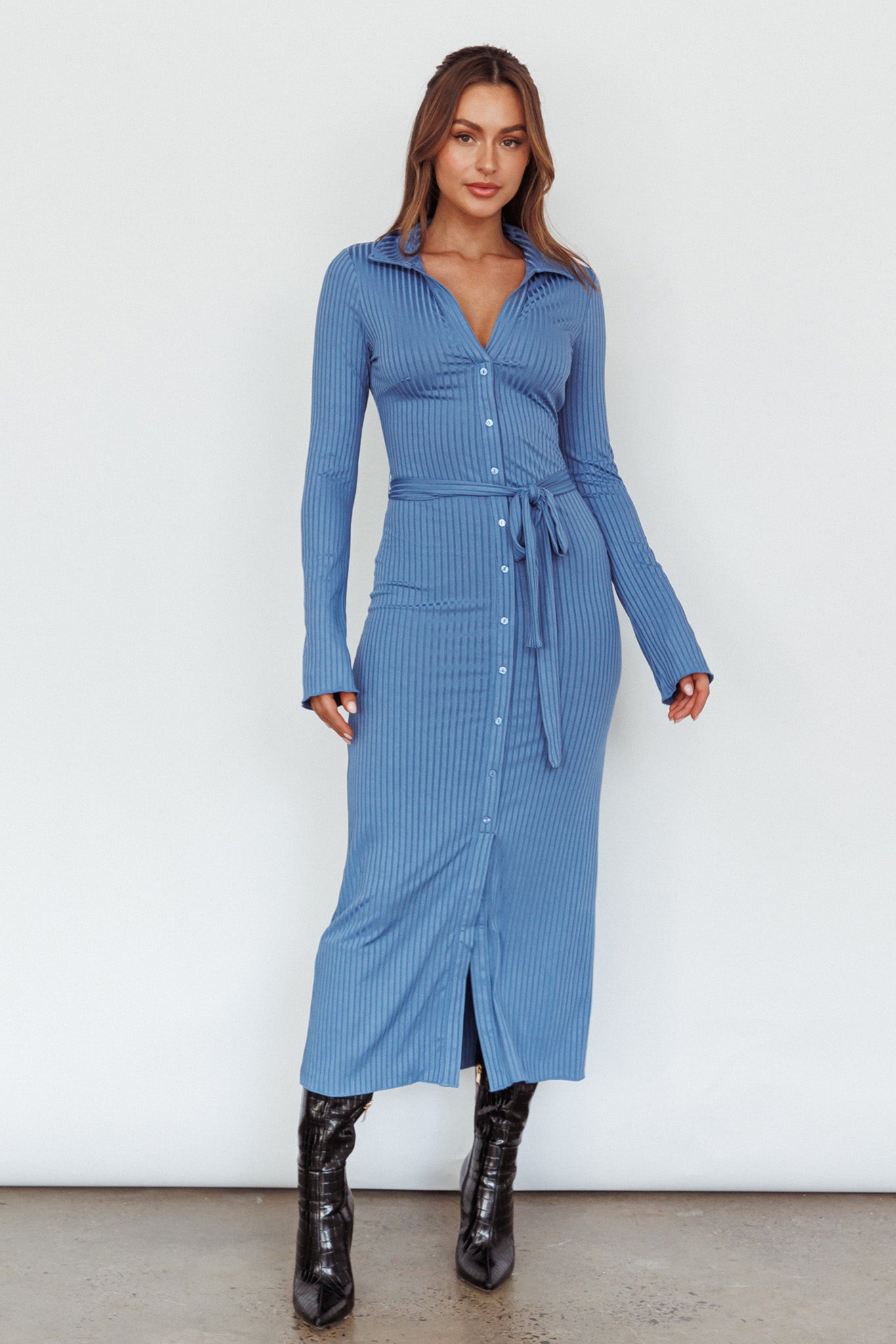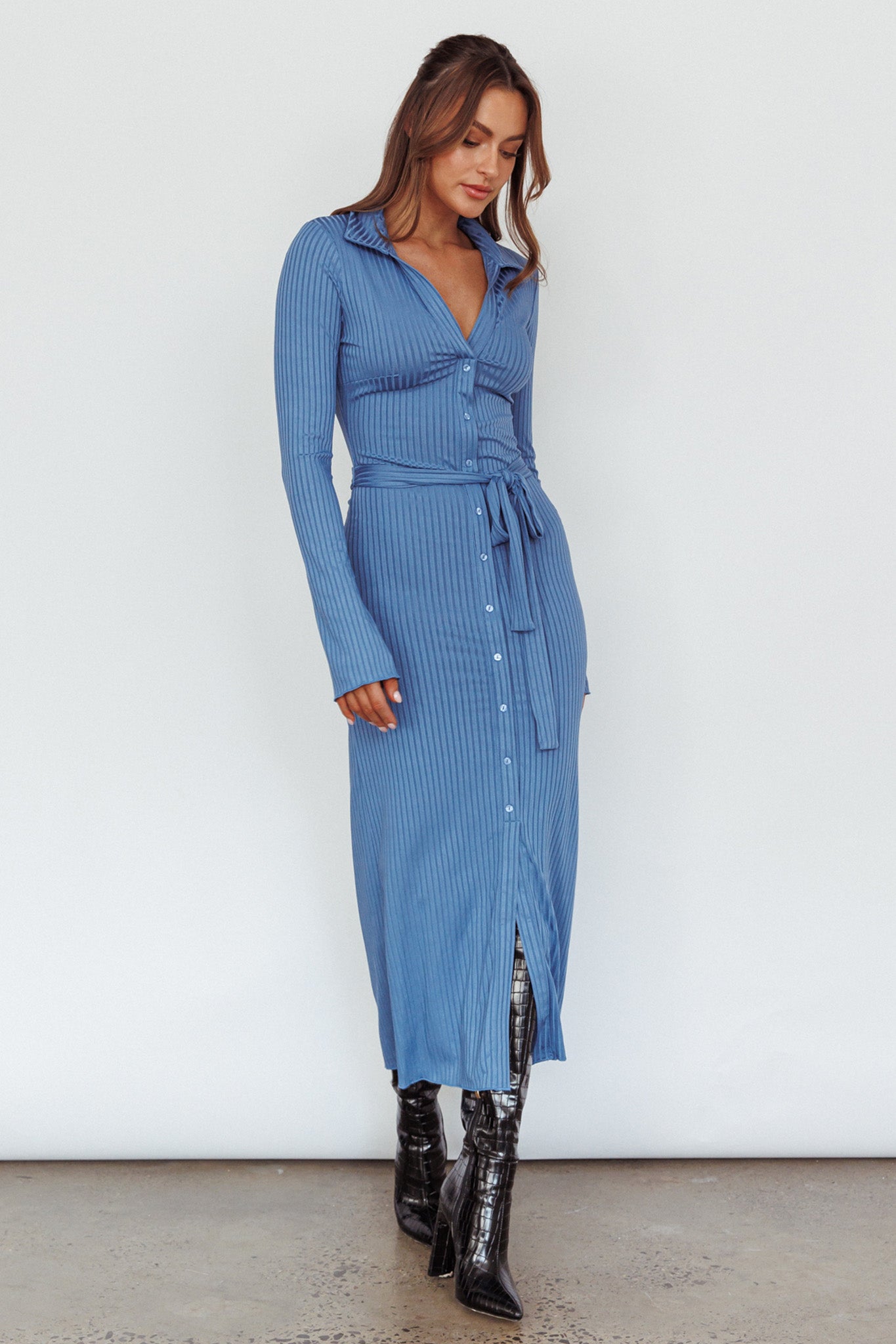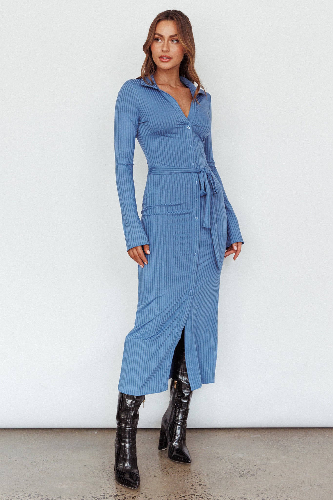 Slay your day in our chic Eastcoast midi dress. Featuring a stretch, ribbed fabric to hug your curves and a faux button placket in the front. Take it from your 9-5 to happy hour cocktails with your girls teamed with boots and a tote for a look that will turn heads.