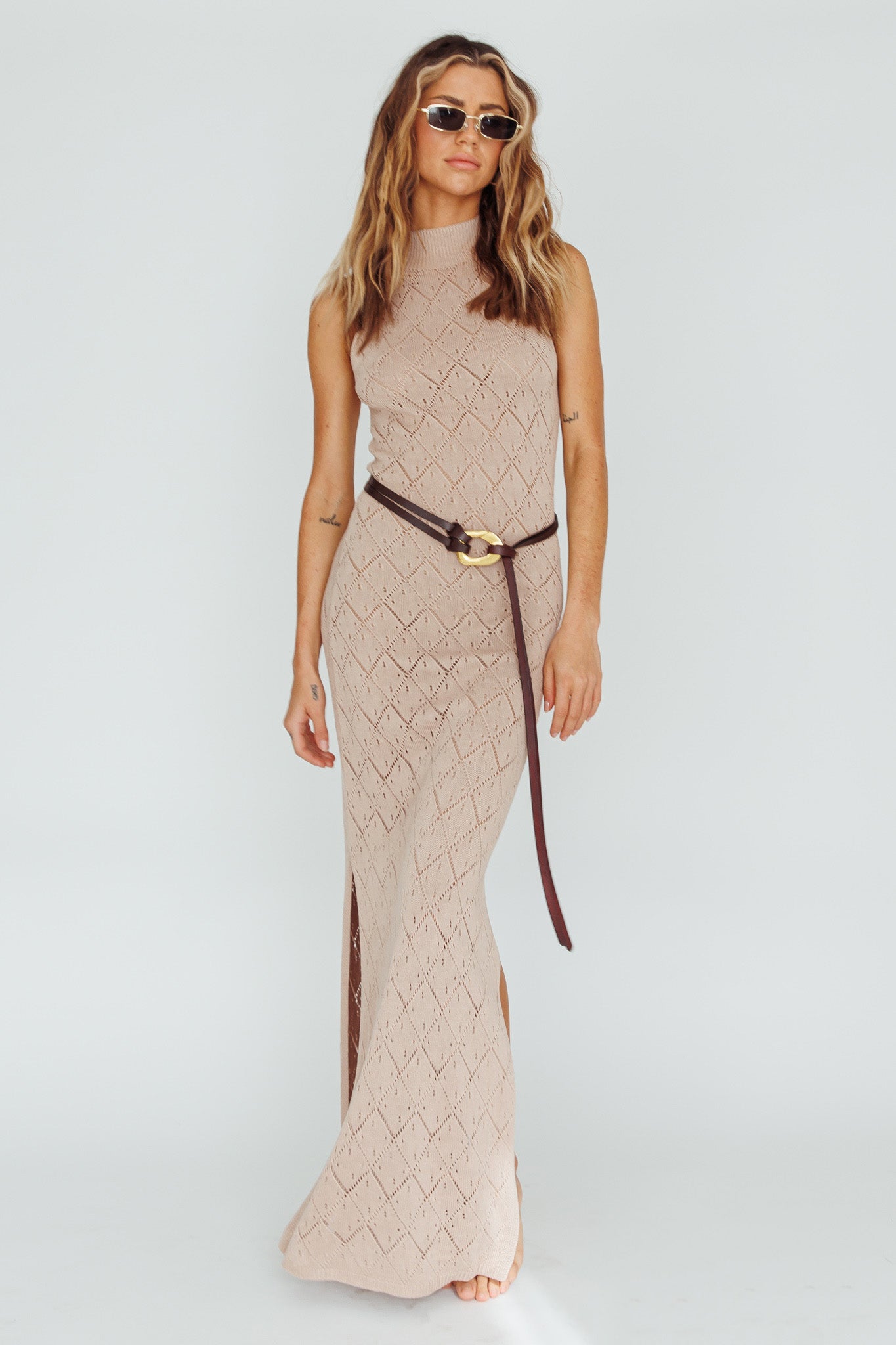 Elisa Sleeveless Crochet Maxi Dress Beige