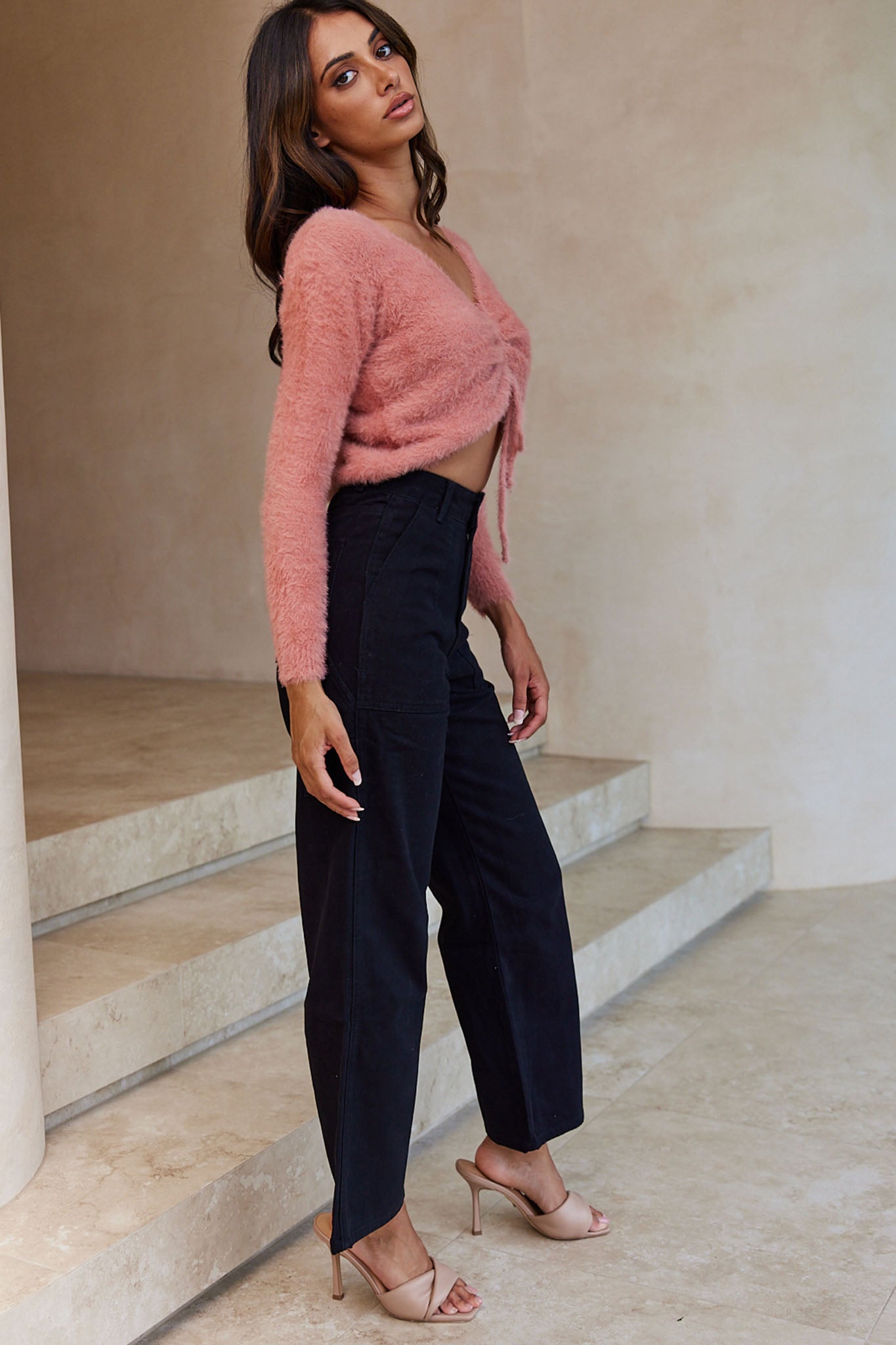Hey there, cutie! We can't keep our hands off this adorable fuzzy sweater. It's so dreamy and soft and we love the ruching detail in the bust. Perfect for a girls' night out teamed with high waisted pants and strappy heels. Super cute!