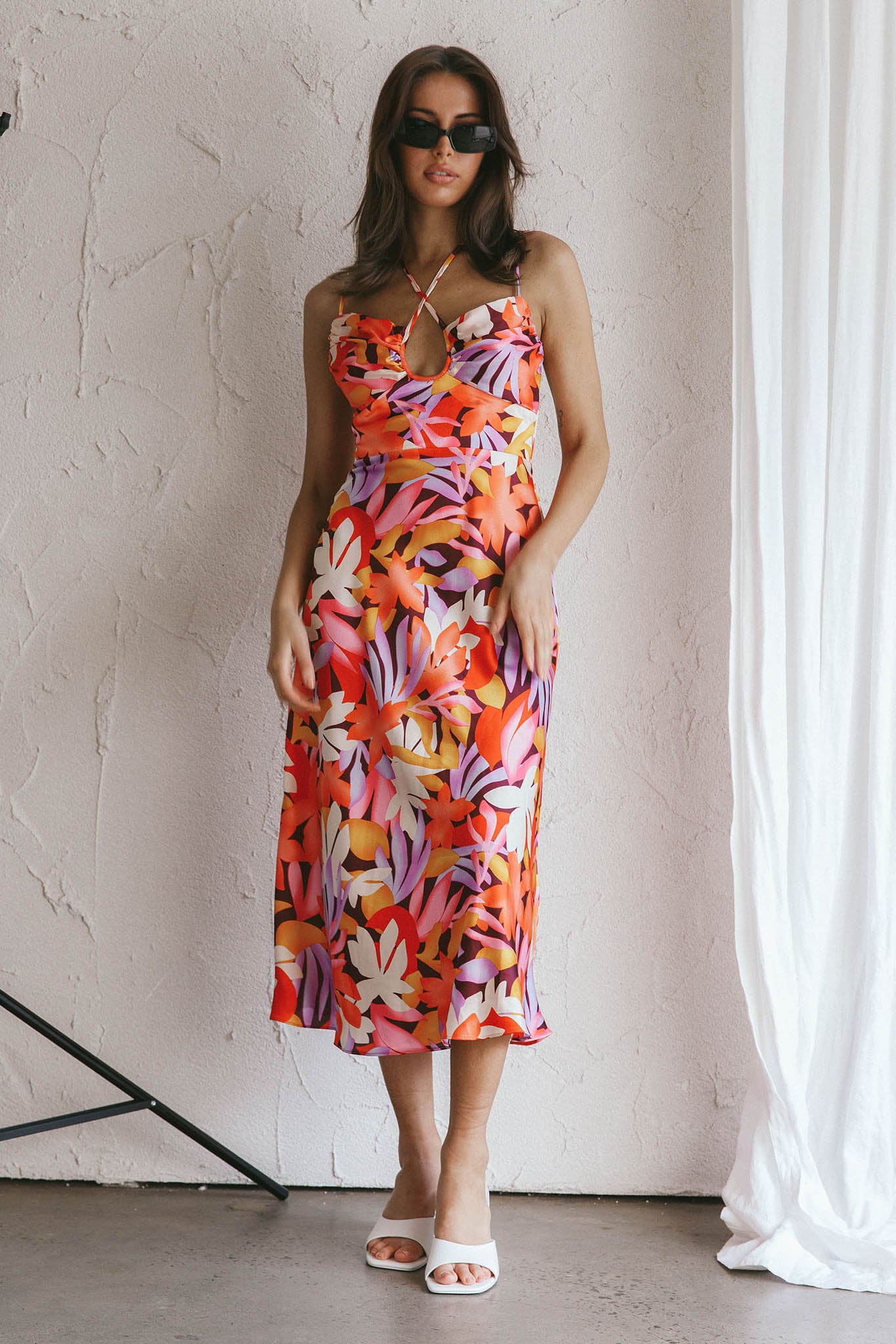 - Orange floral midi dress