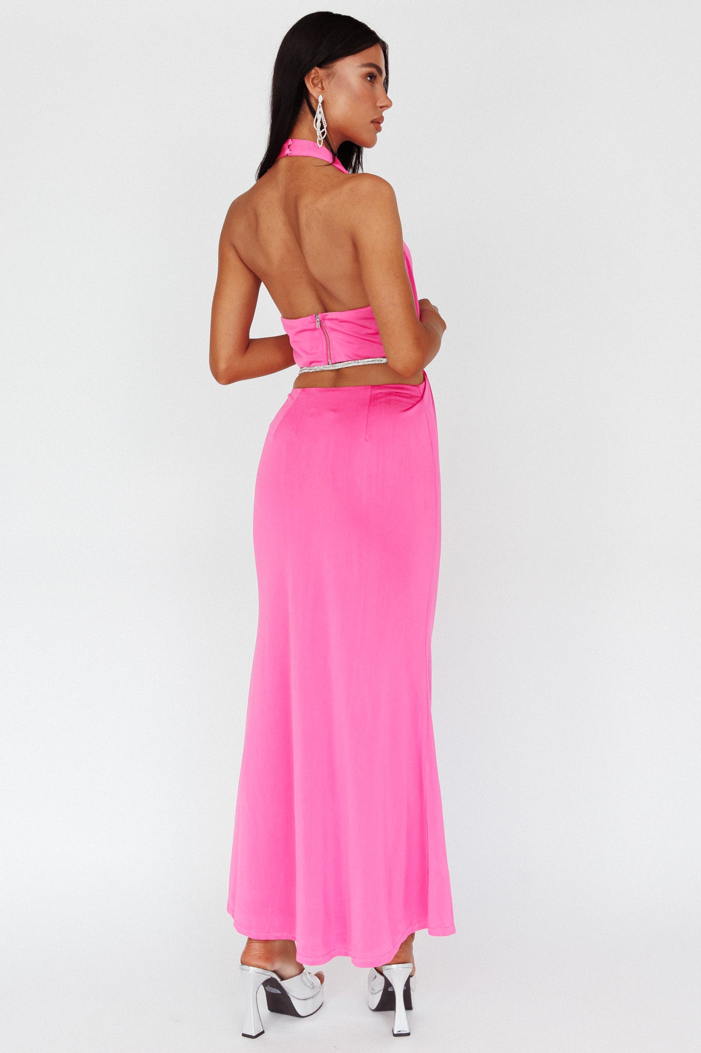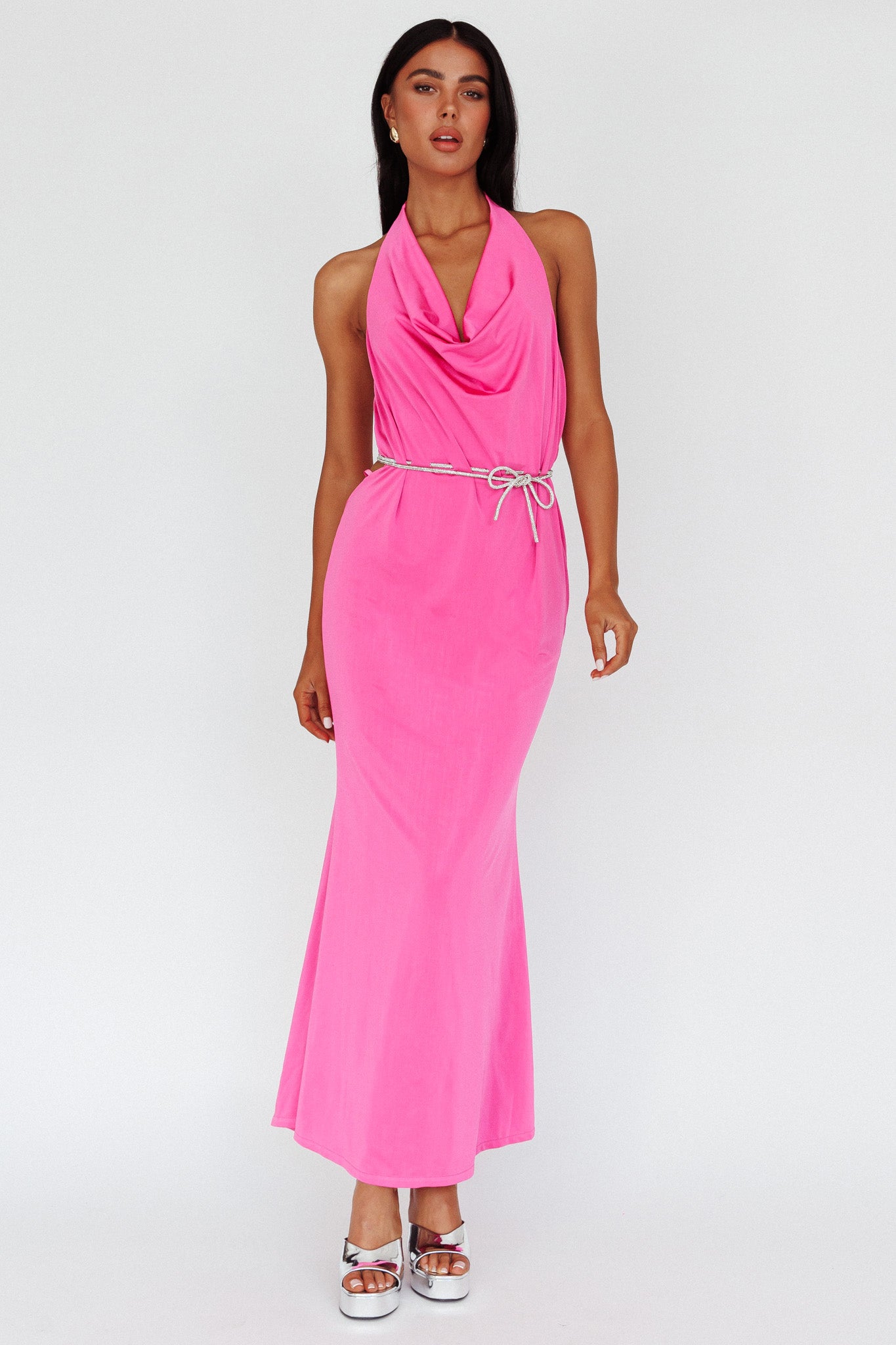 Emmi Cowl Neck Diamante Rope Dress Magenta