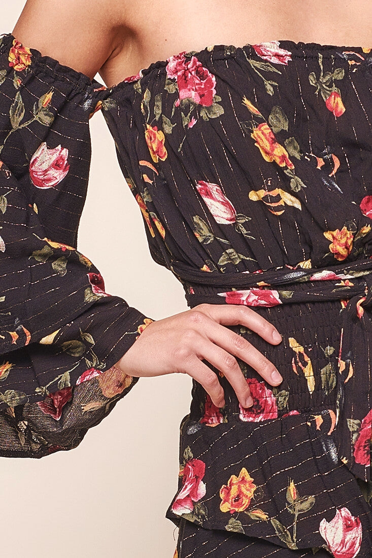 A romper you'll want to wear everywhere! Intricate floral and gold detail dance along the willowy fabric. Pair with black heels and a statement clutch or leather backpack.