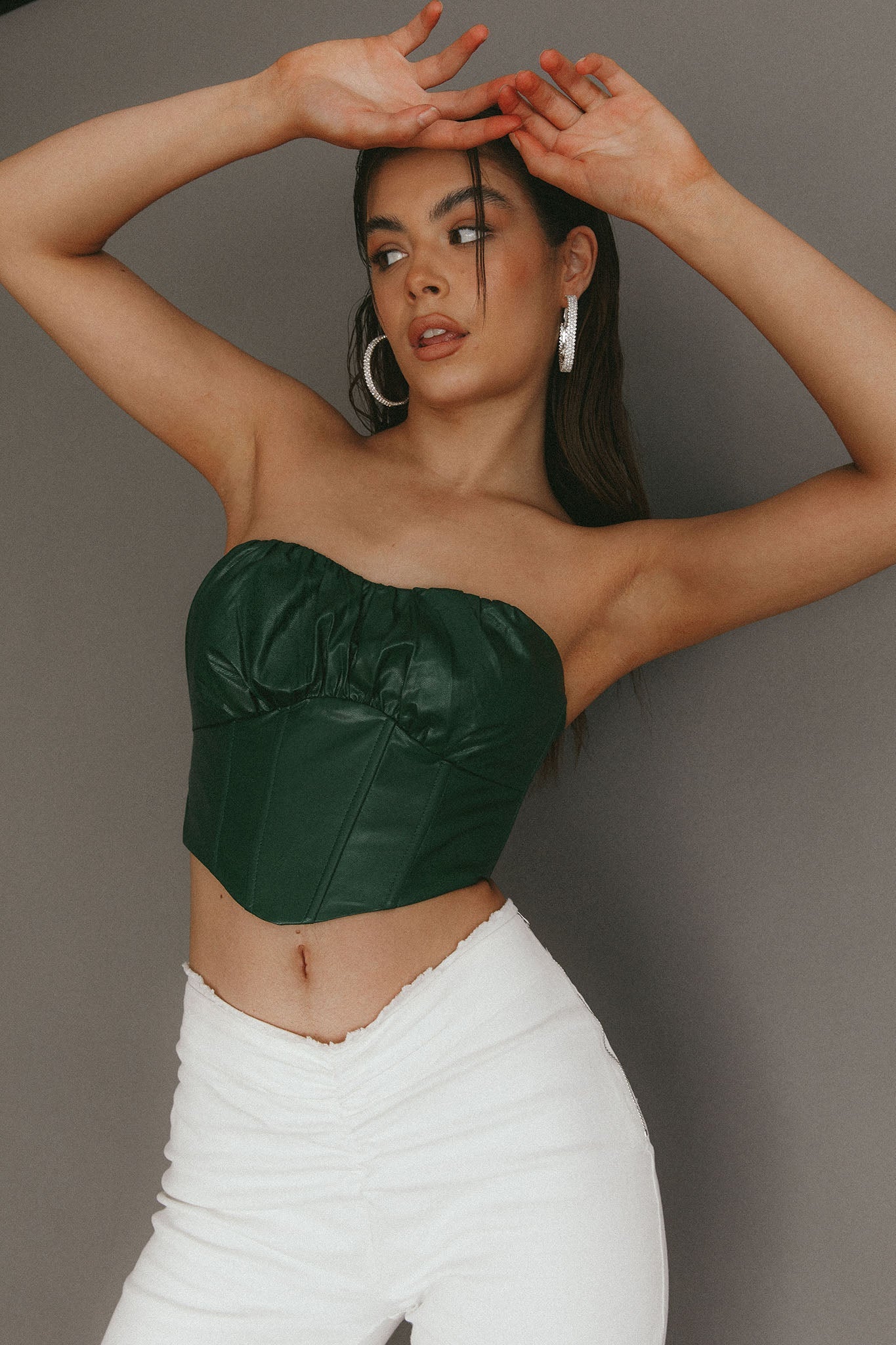 Hey there, cutie! You're looking hot in our Erikah crop top. Featuring a strapless style and boning in the torso. It's perfect for a girls' night out teamed with a low-rise mini skirt for an on-trend Y2K look.