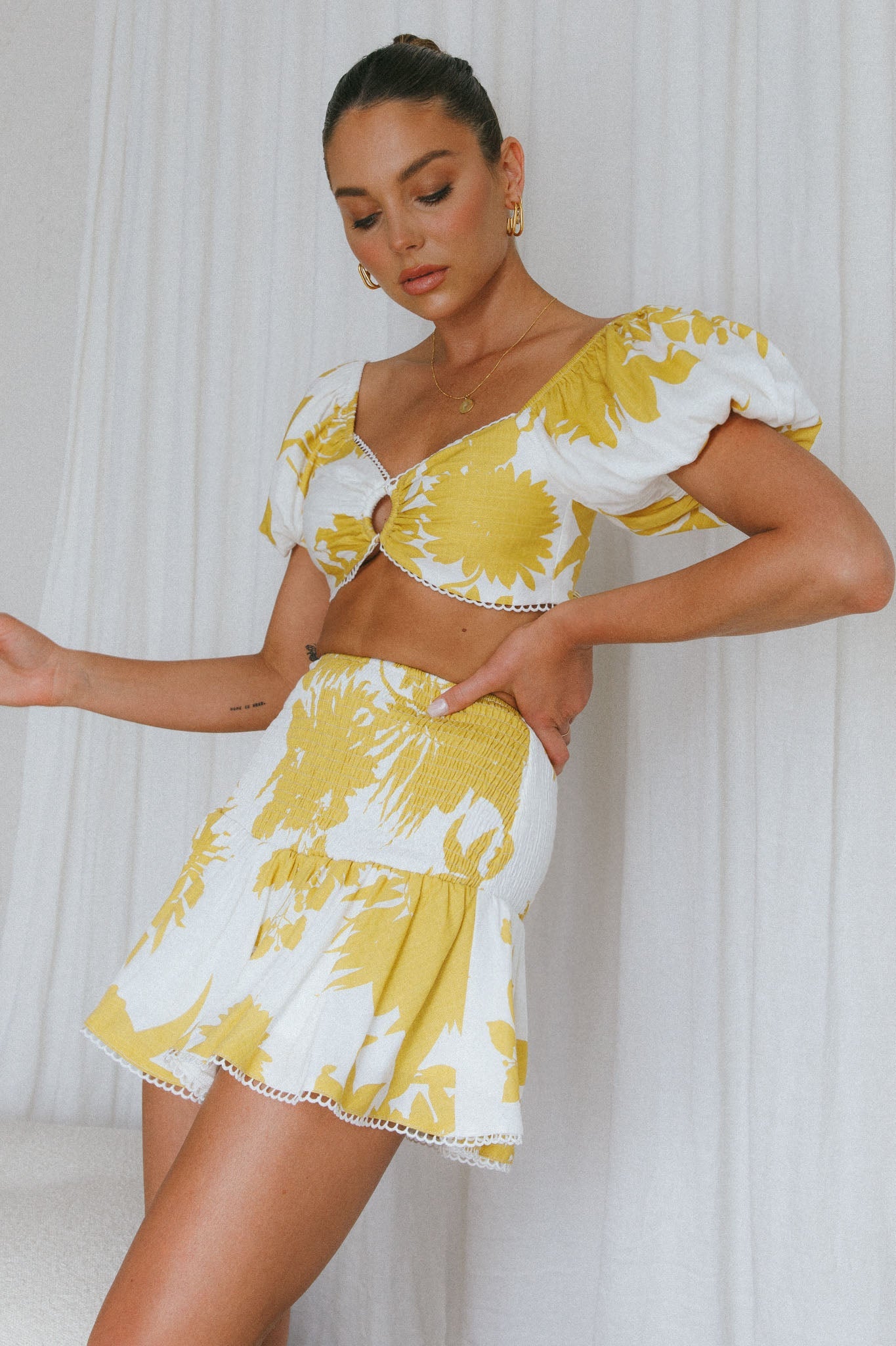 The Summer is calling us and we need this skirt, stat. We are loving its comfy yet chic shirred waist and pretty lace trim. Perfect for your next beach vacay teamed with its matching crop top or a bikini. Hot!