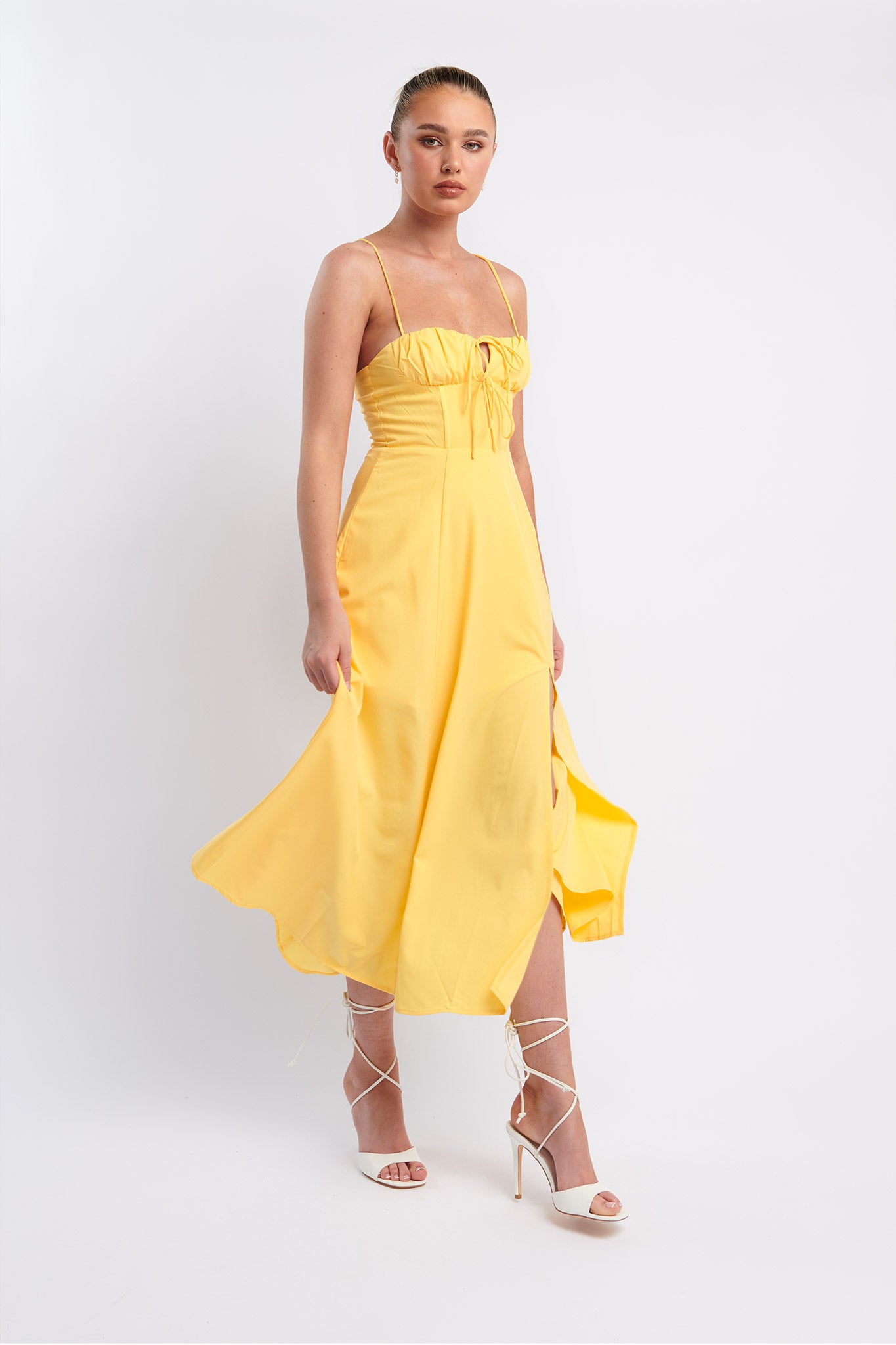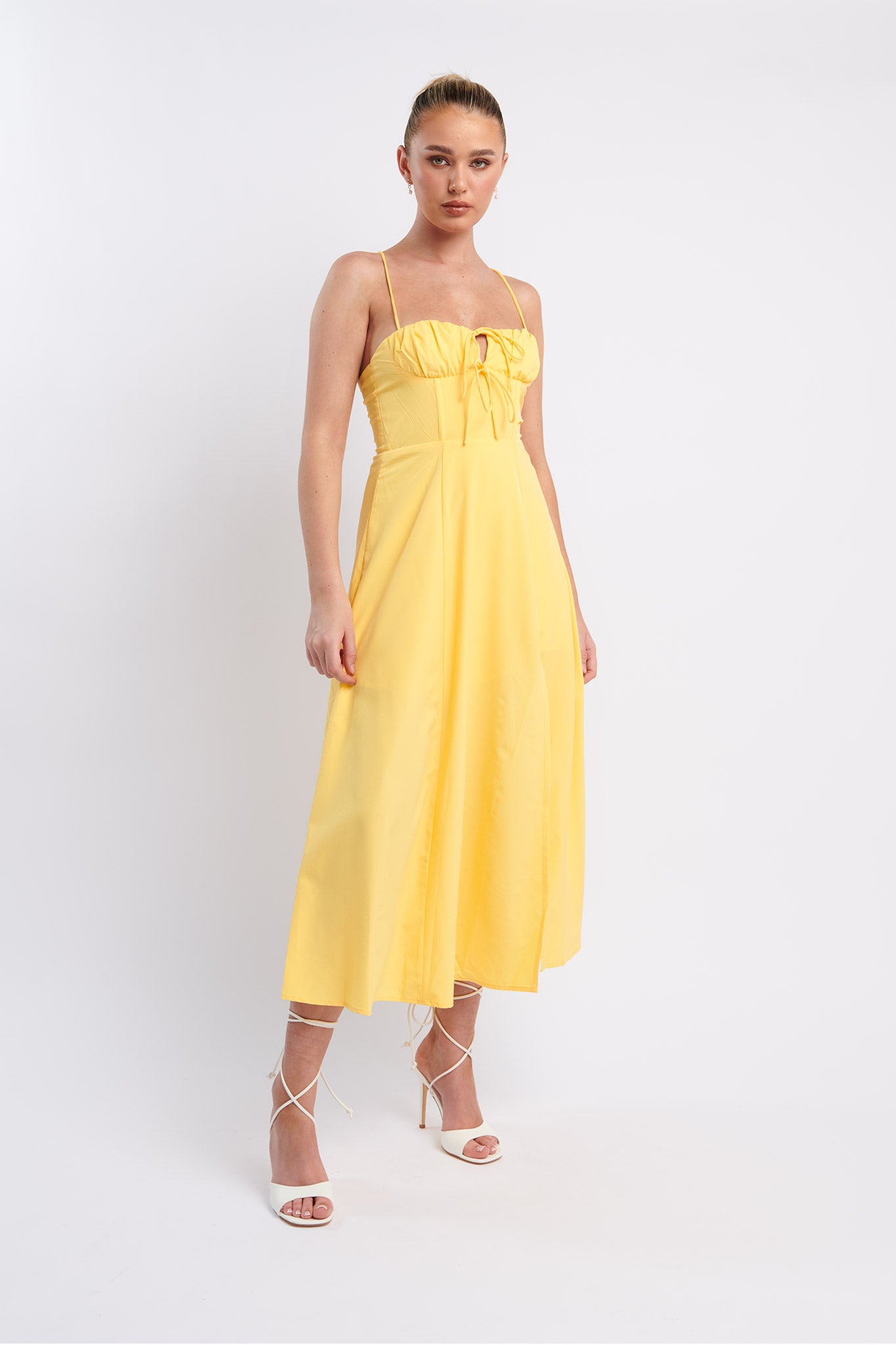 Our Euro Summer dress will have you feeling like packing your bags and jetsetting with your girlfriends to Italy for a European adventure. Featuring the cutest tie detail in the bust and lace-up back. It's perfect for sight-seeing in style. Team it with sandals and a chic, straw bag for an Insta-worthy look.