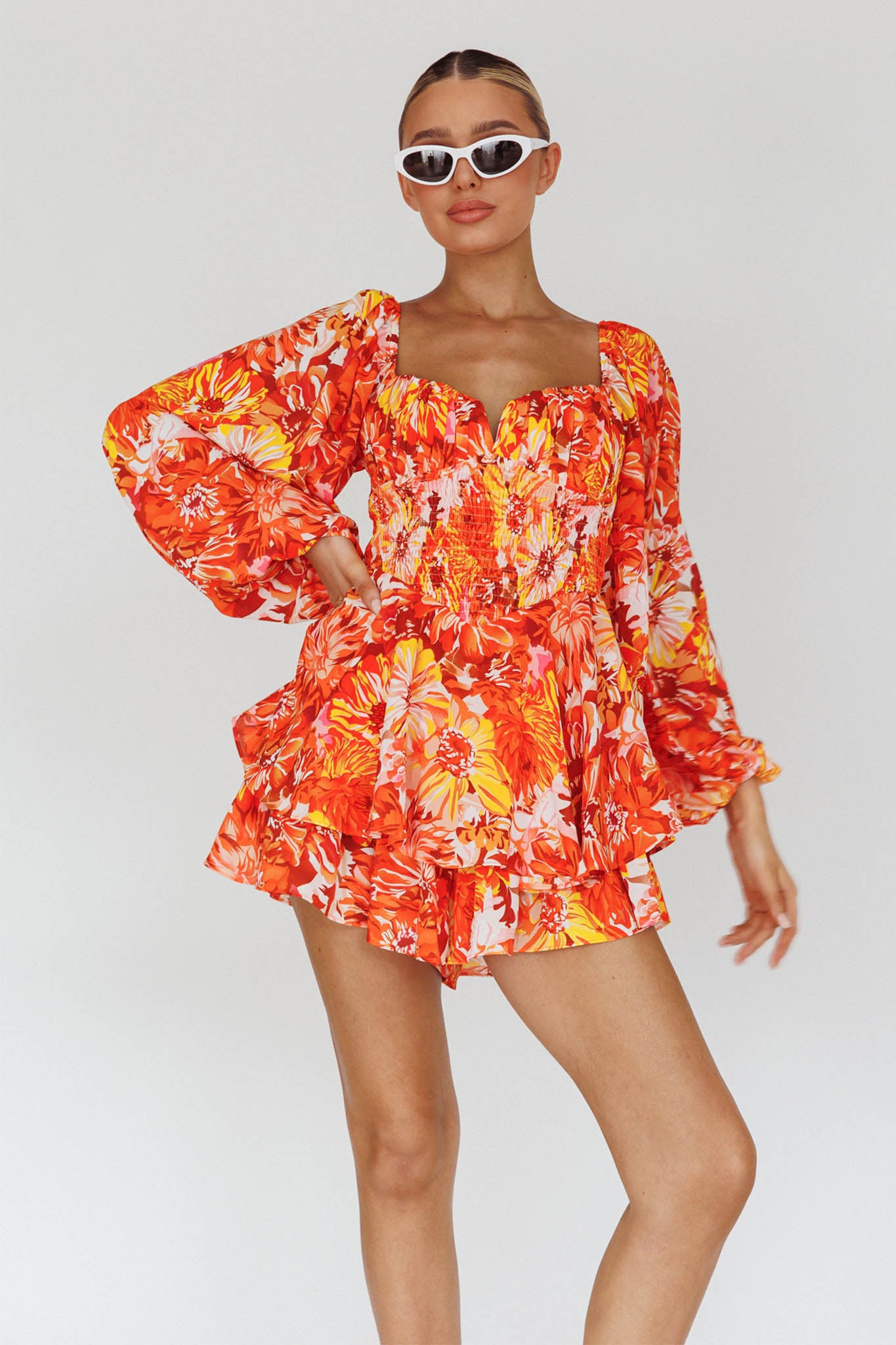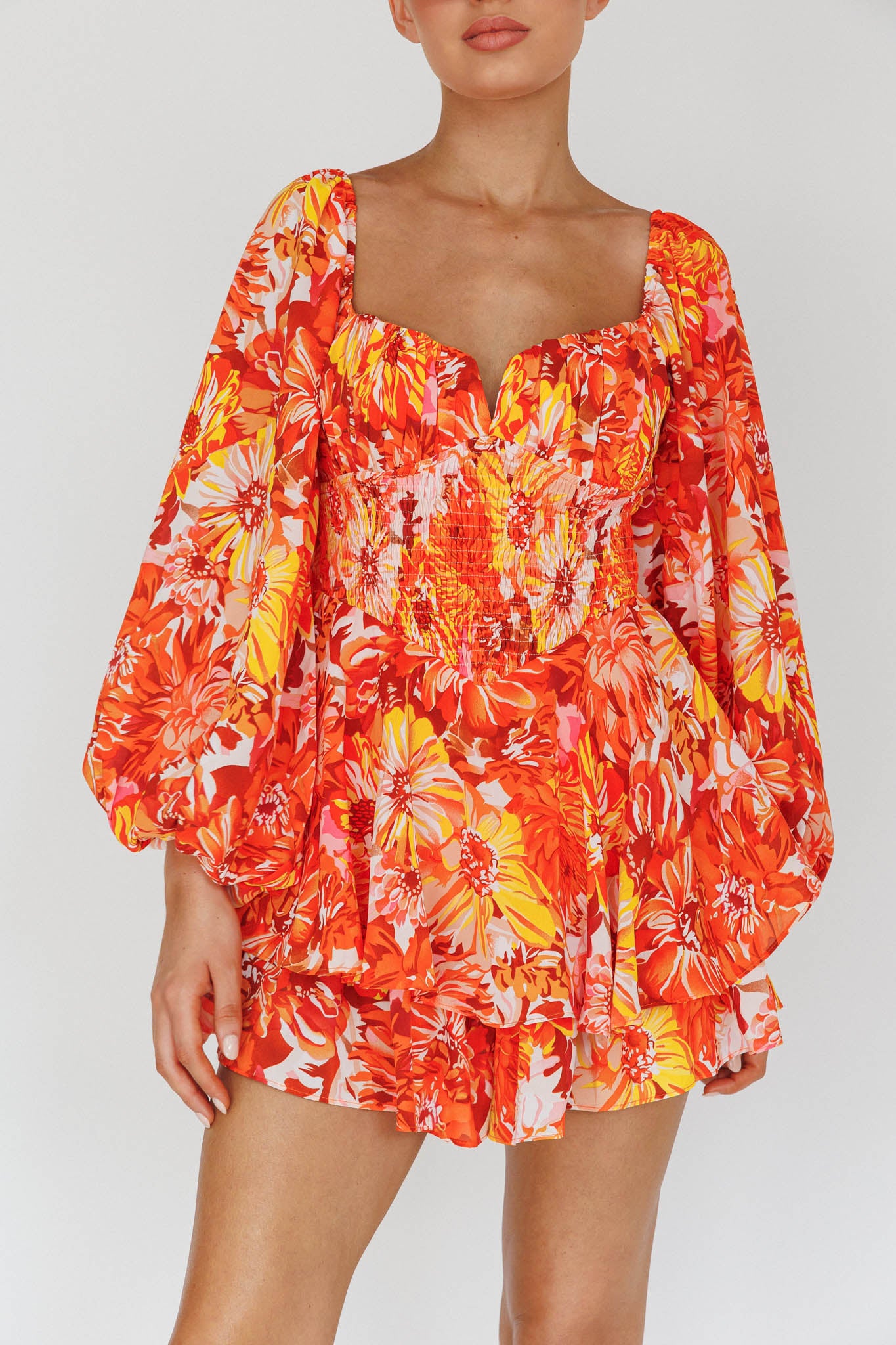 Twirl through your day in our gorgeous Evanice dress. We are in love with the shirring detail in the waist and the billowy balloon sleeves. Perfect for a girls' day out! Team it with strappy, white kitten heels and a tote for a look that will send you straight to the best dressed list.