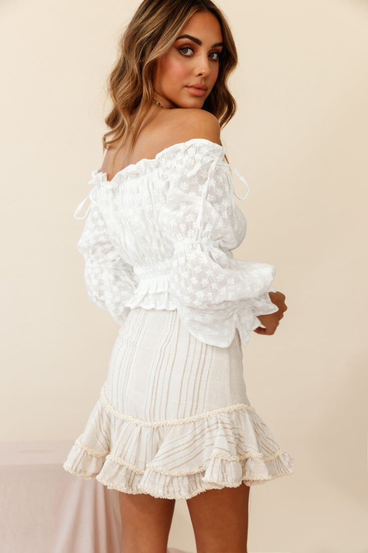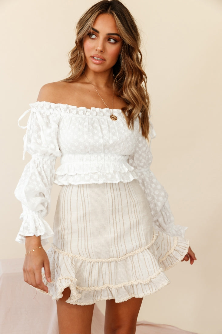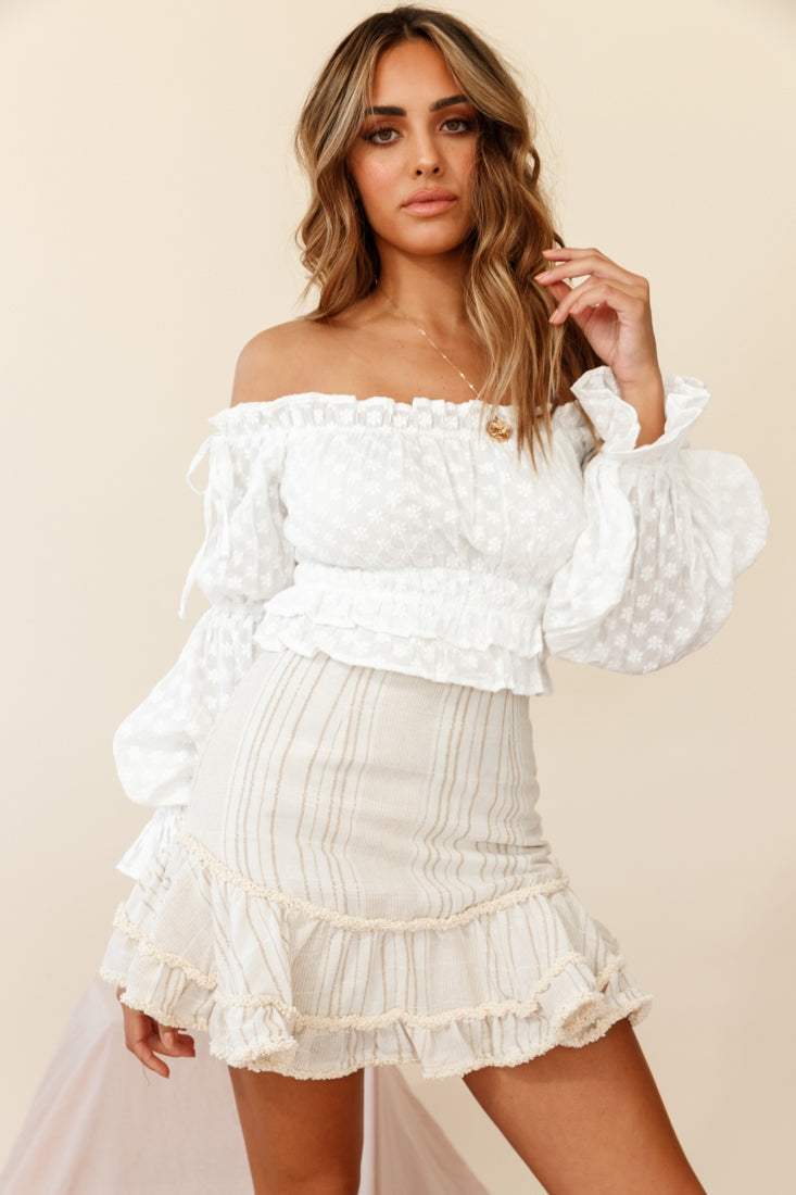 We are loving our super chic Eve skirt. It features a striped, linen blend fabric, ruffle hem and invisible zipper in the back. Perfect for your fav music festival teamed with our Taryn top and boots. Hot!