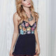 This Romper is a must have piece for this season. Beautiful, technicolor florals embrace the bodice of this romper. Team with anything from barely there heels and a blazer to crop jacket.