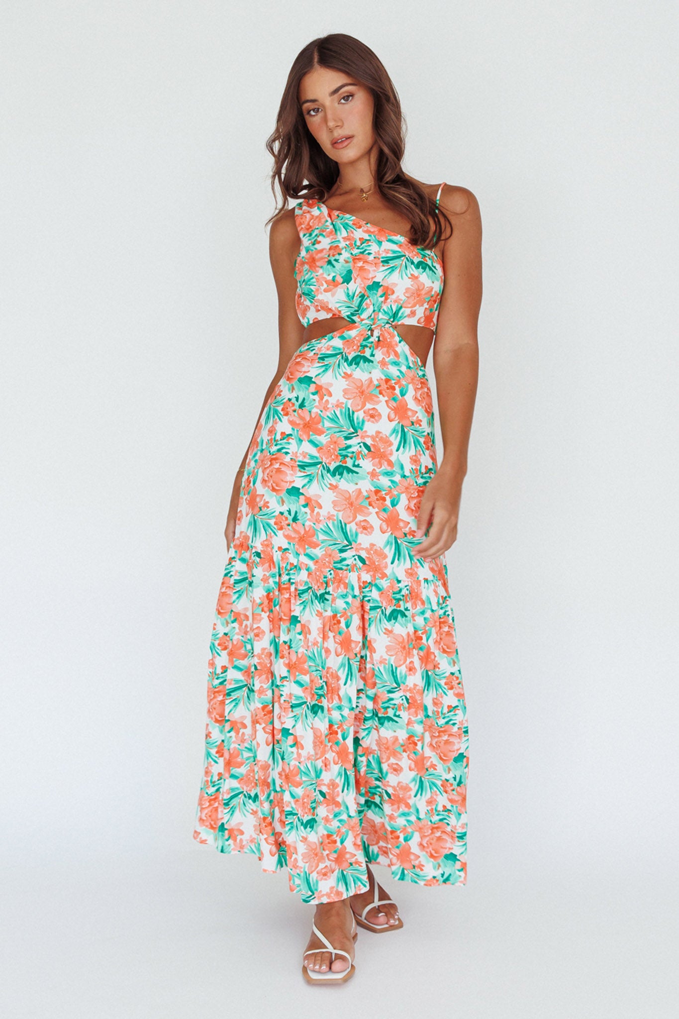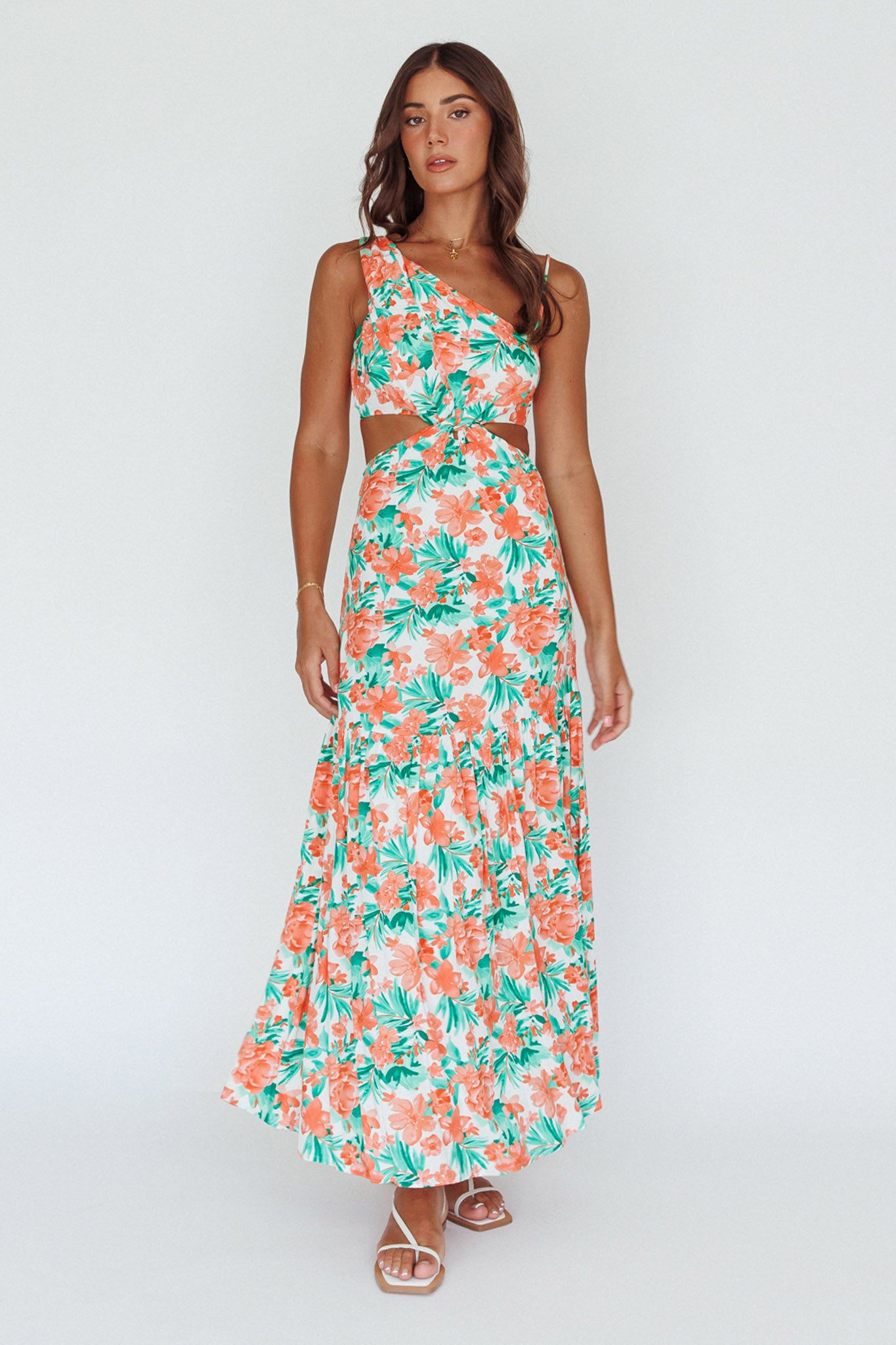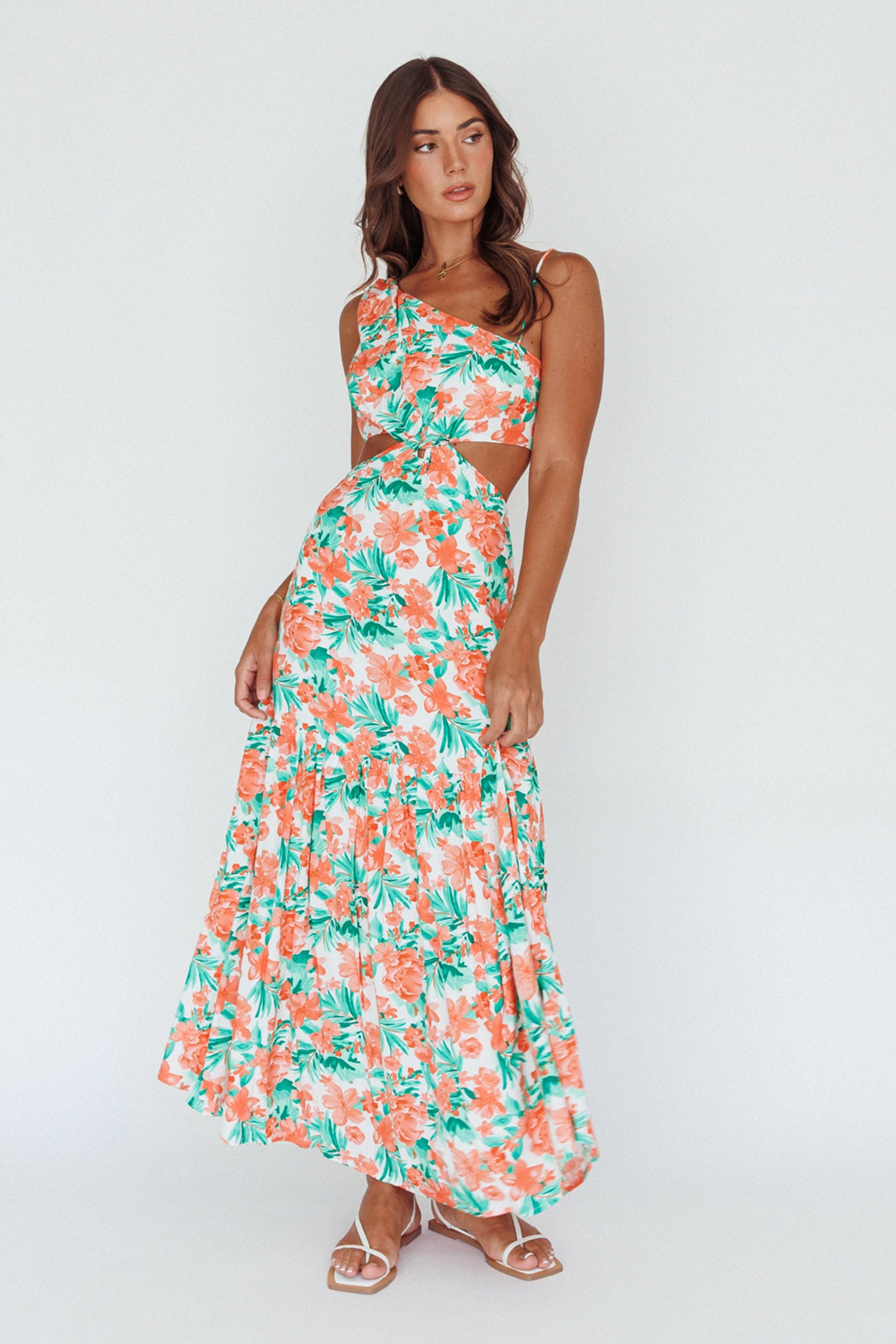 Evening Breeze Cut-Out Waist Maxi Dress Floral Orange