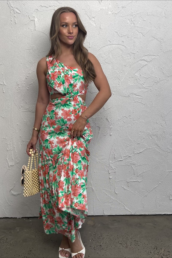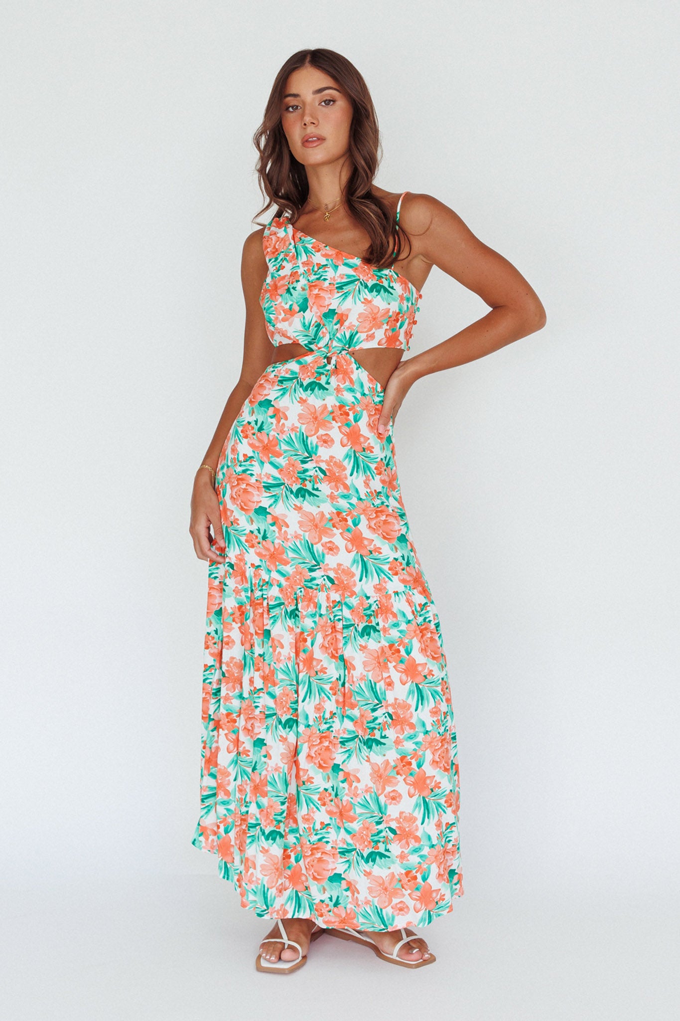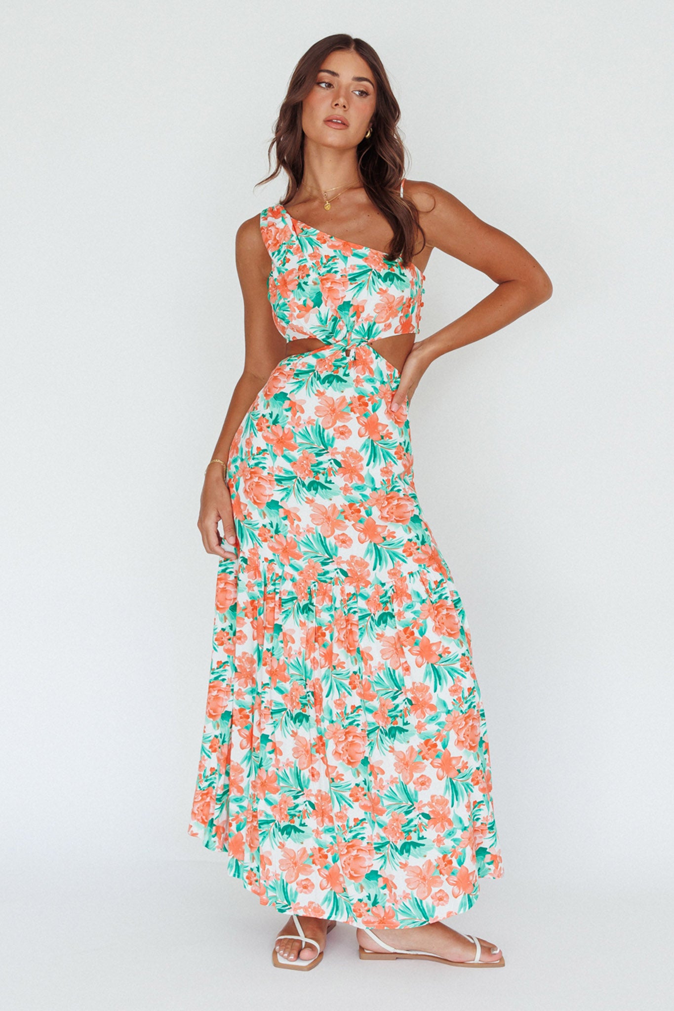 Evening Breeze Cut-Out Waist Maxi Dress Floral Orange