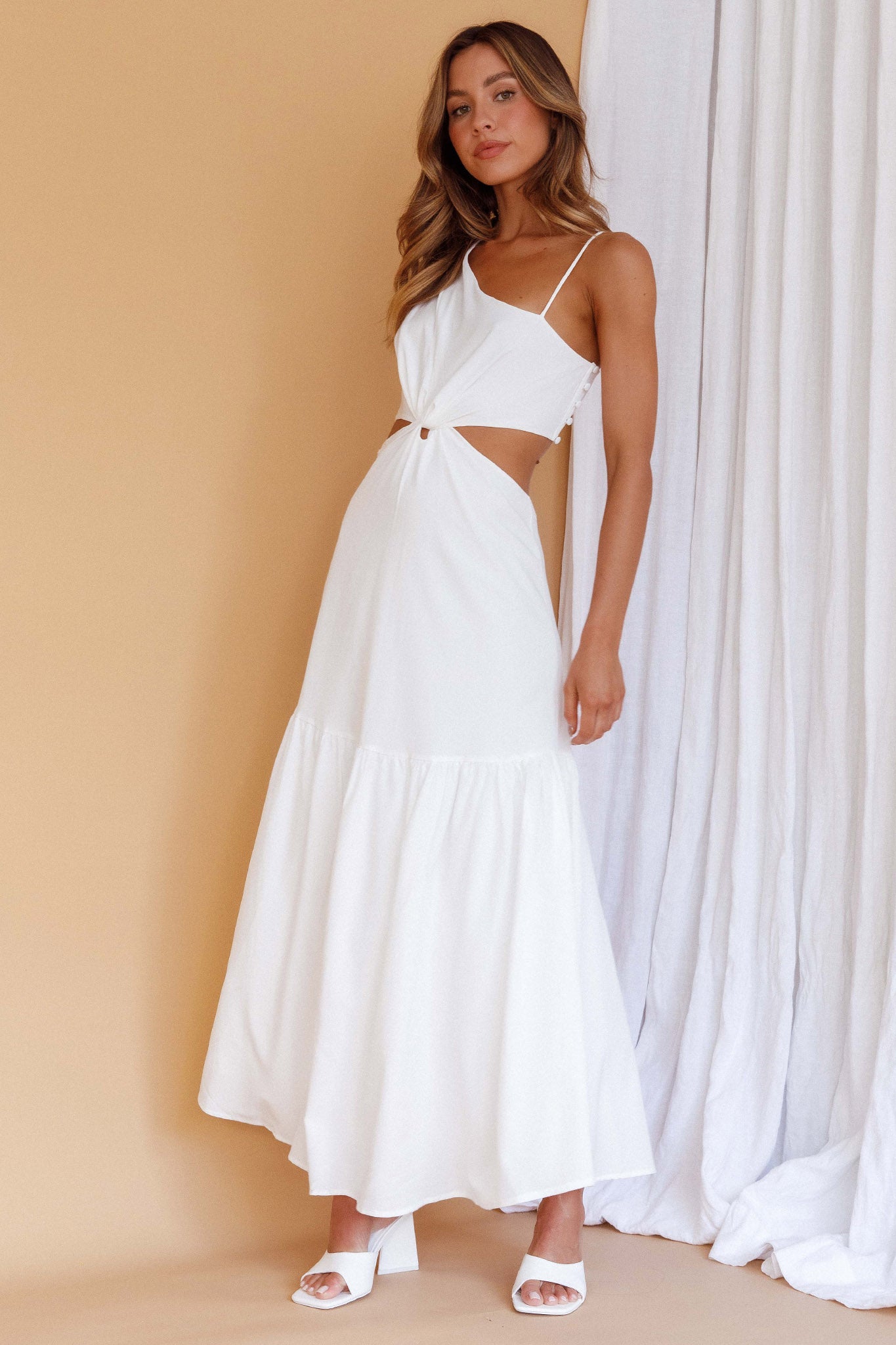 Turn heads in our gorgeous Evening Breeze maxi dress. We are in love with its unique back detail and cut-out waist. Perfect for warm Spring days strolling your favorite vintage markets. Team it with sandals and a tote for a chic look we can't get enough of.