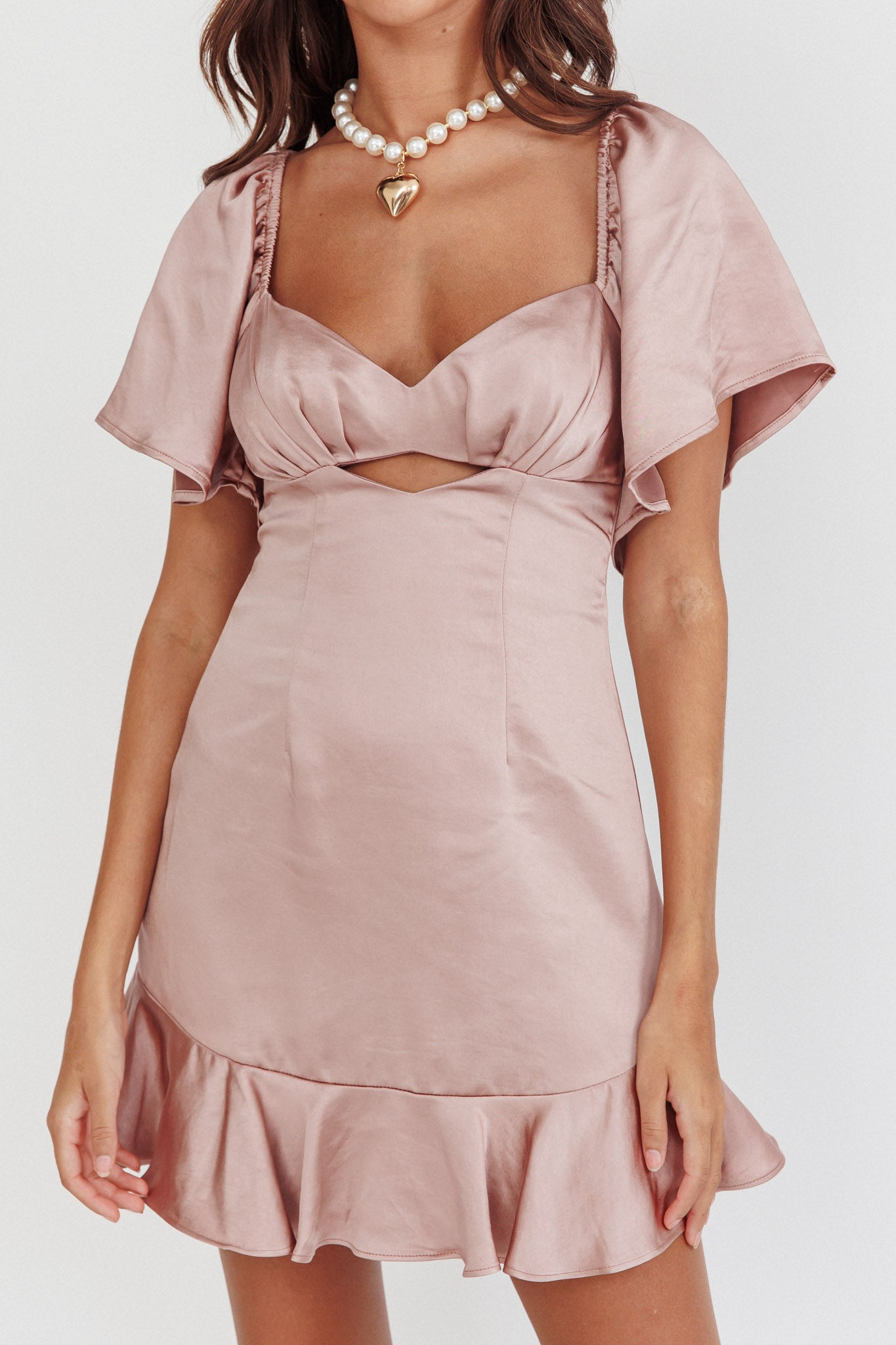 Eyes On You Pleated Bust Angel Sleeve Ruffle Hem Dress Blush