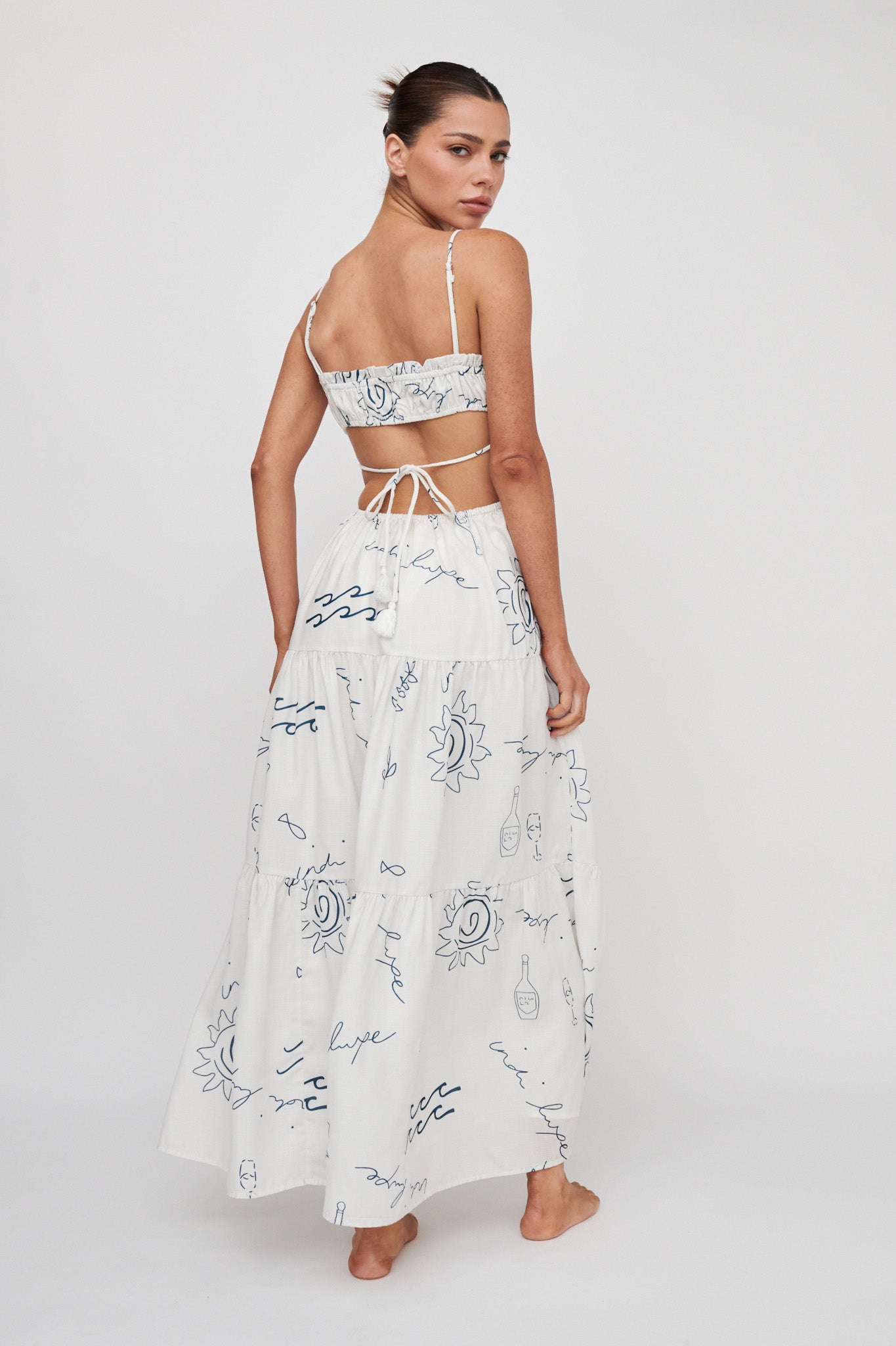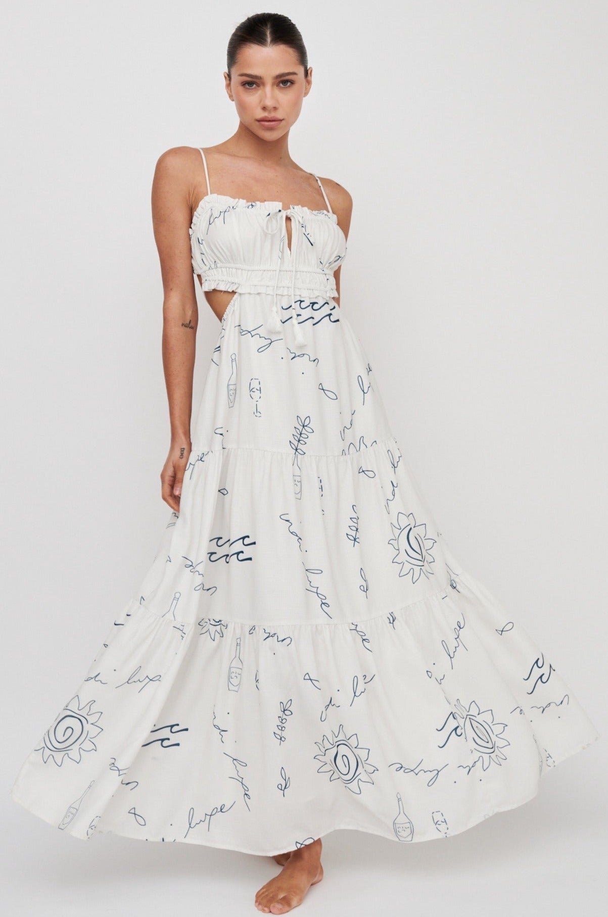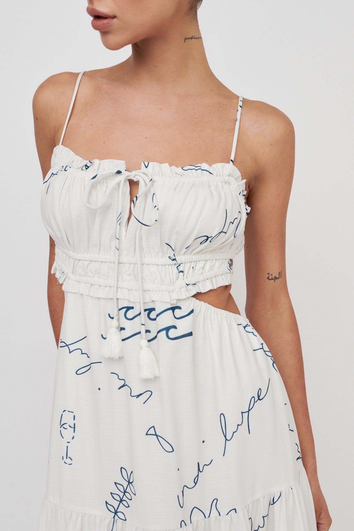 Eyona Cut-Out Back Tie Maxi Dress Print Cream Blue