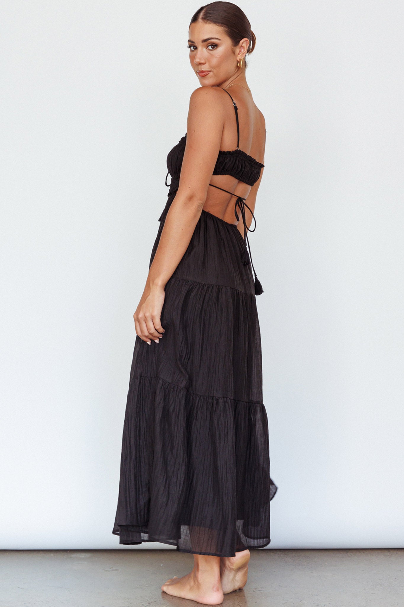 Eyona Cut-Out Waist Tie Maxi Dress Black