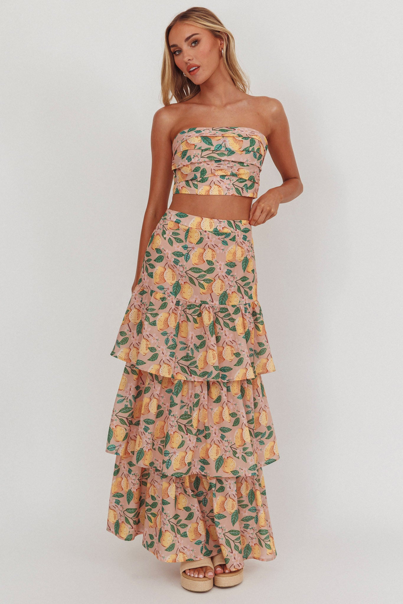 Ezmeralda Tiered Ruffle Maxi Skirt Lemon