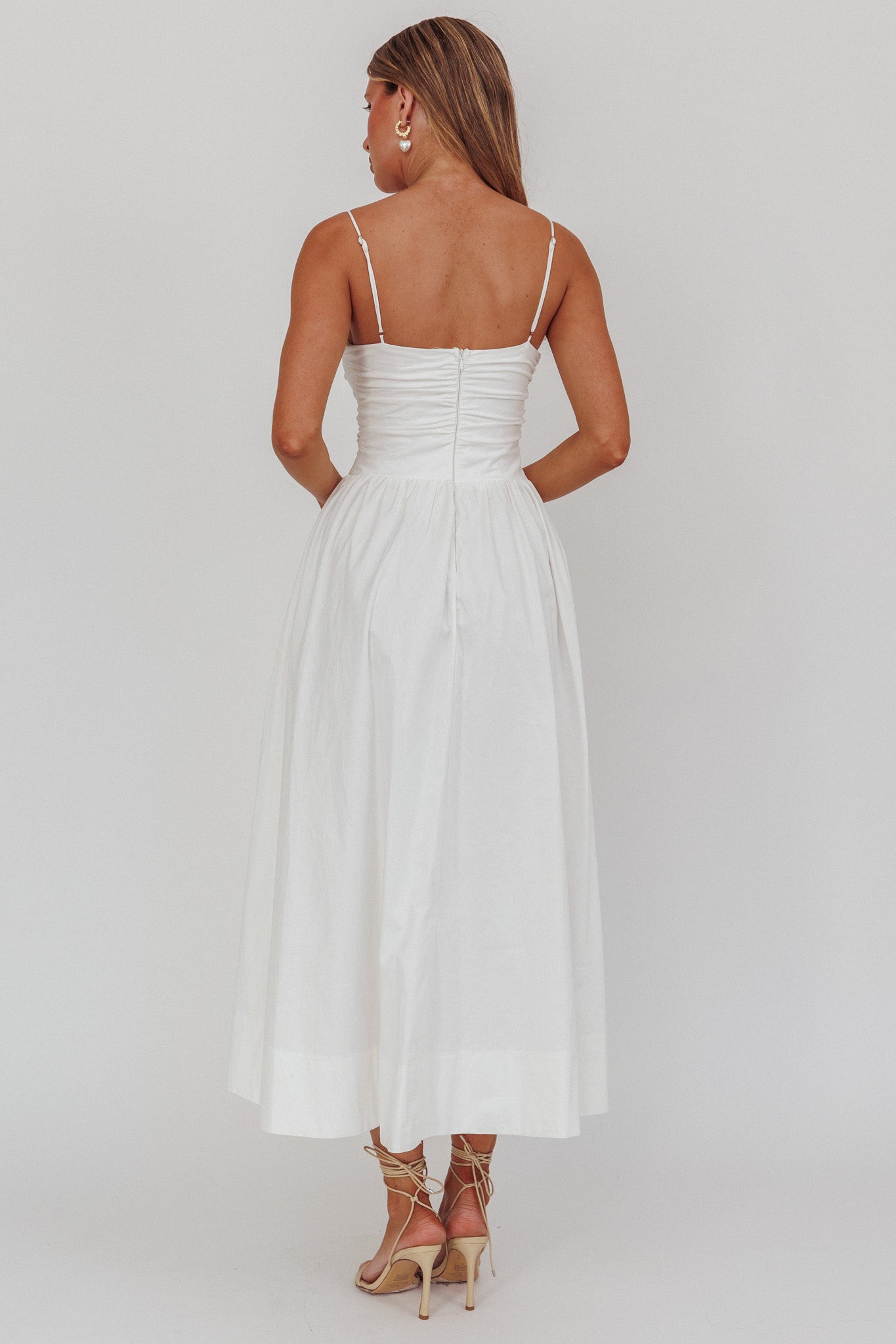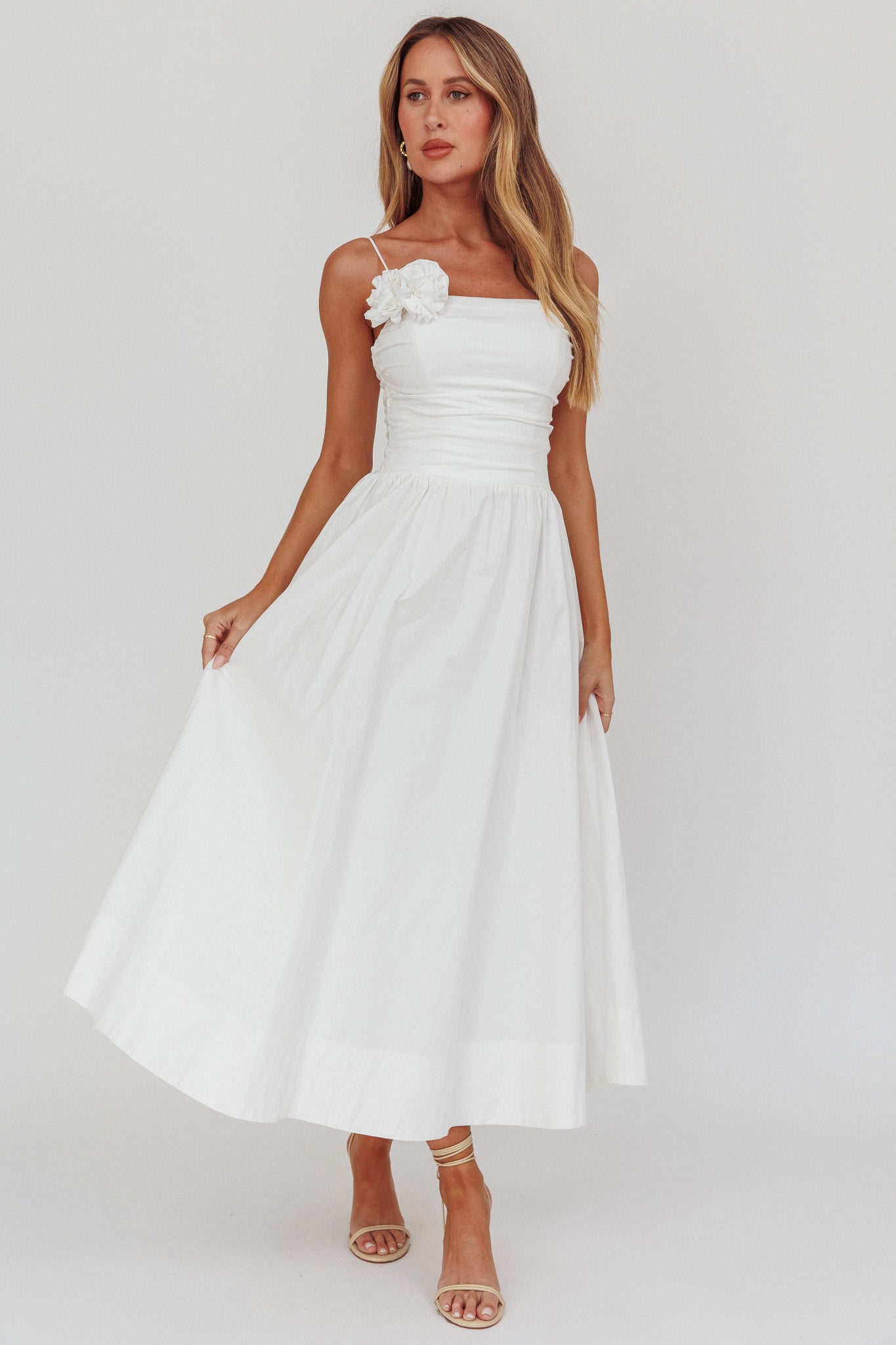 Make heads turn in our stunning Ezrah maxi dress. It features detachable rosette pins and an A-line skirt that's perfect for twirling the day away. Wear it to your bridal shower or a special soiree teamed with strappy heels for an unforgettable look.