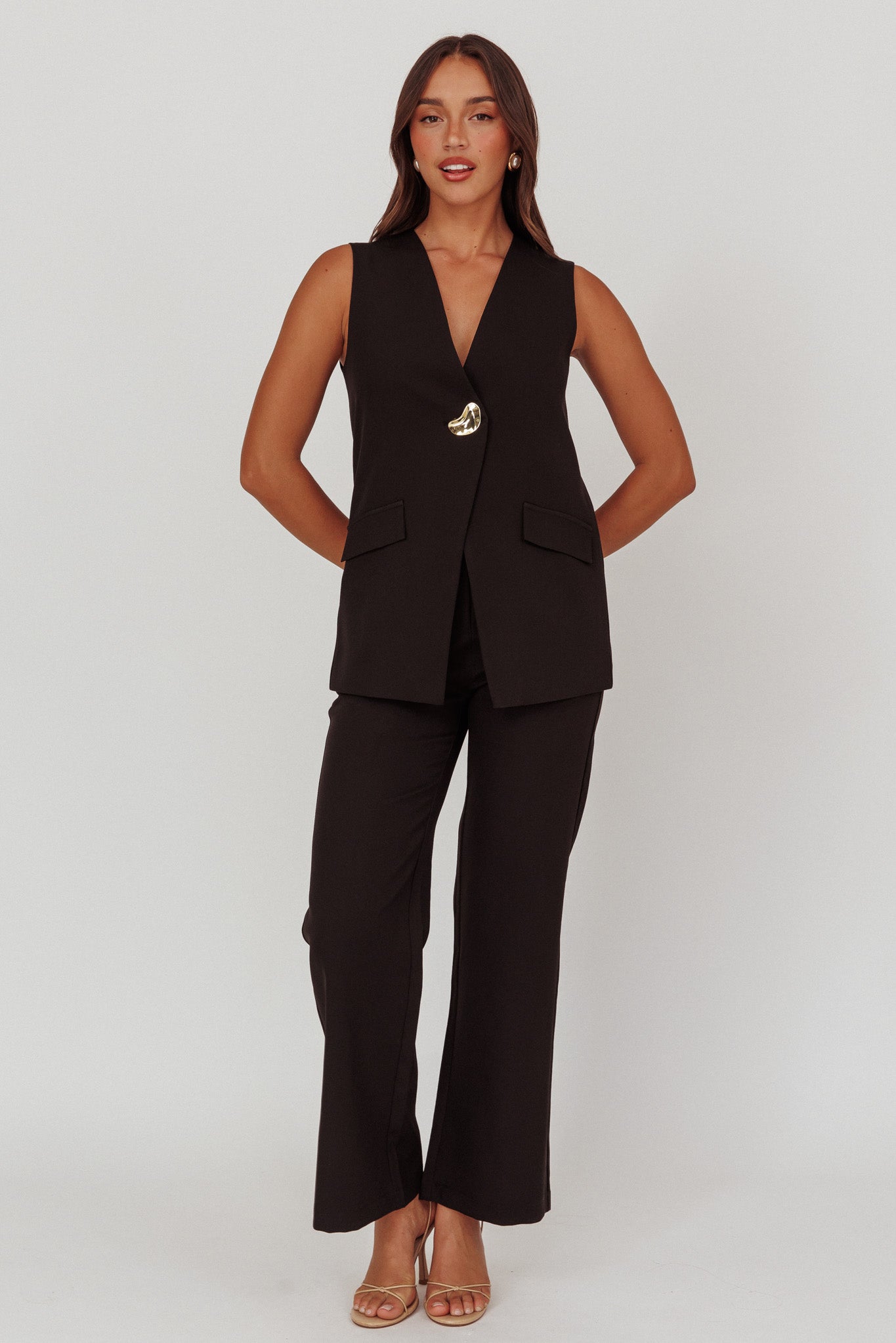 Make an impression in our sophisticated Fair Play pants. They feature a flared leg and high-waist design. They're perfect for the office or date night with your love. Team them with their matching top and pointed-toe pumps for a super chic look.