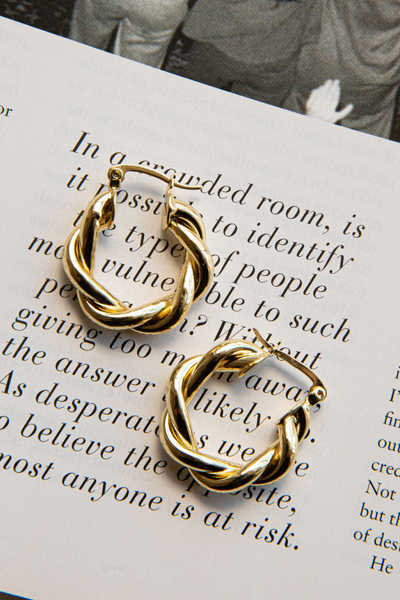 Steal the show in our gorgeous Fate earrings. Featuring a classic hoop wrapped with an intricate rope design. They're the on-trend luxe life look we are living for and are perfect for a wedding or special birthday celebration. Team them with a satin mini dress for a head-turning look.
