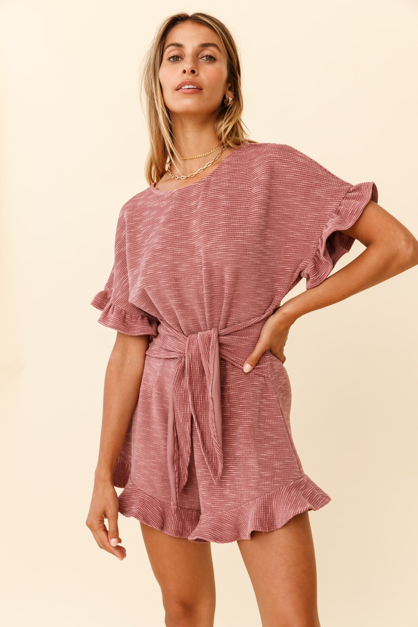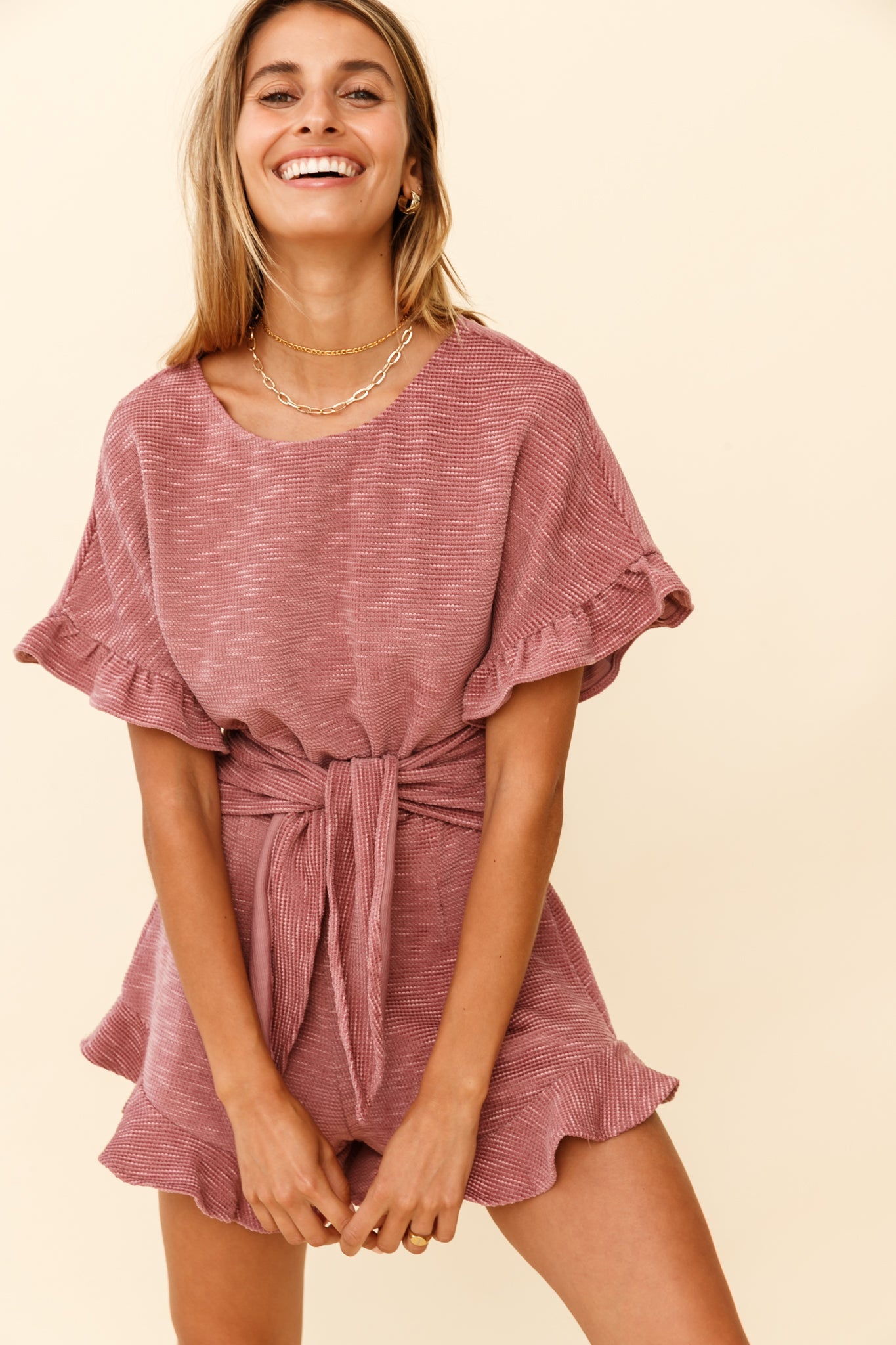 Feelin' Blessed Waist-Tie Frill Trim Romper Mauve