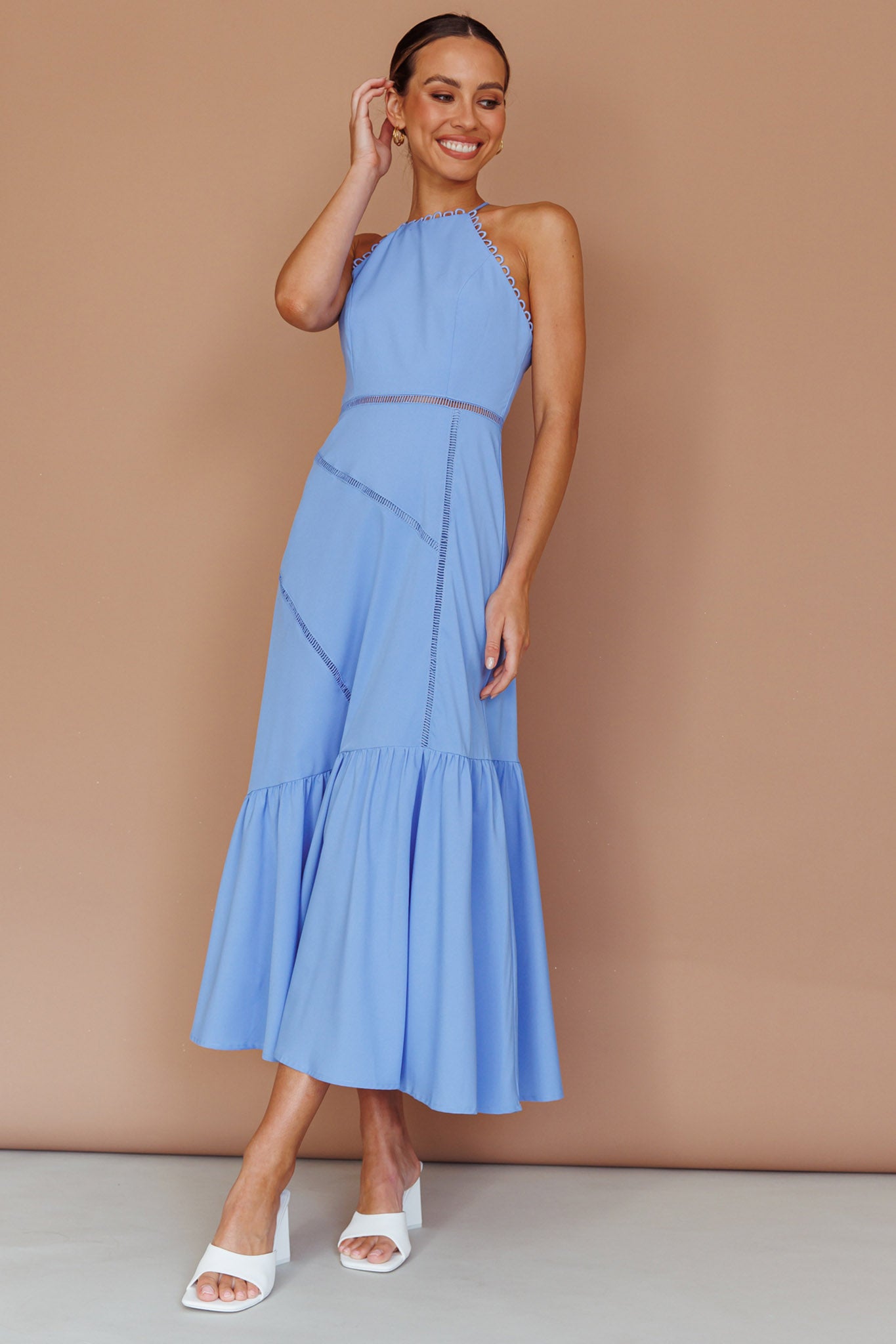 Felini Criss-Cross Back Flounce Midi Dress Blue