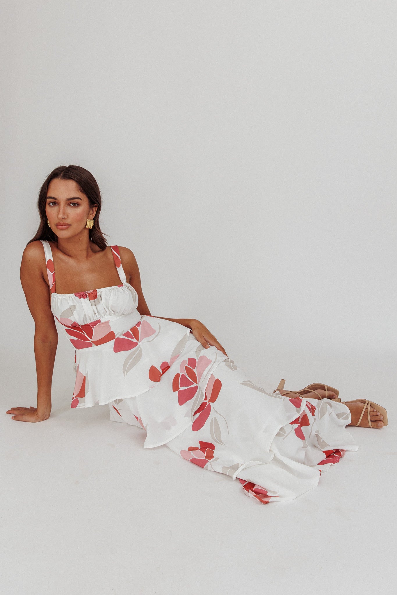 - Multi-tiered ruffle maxi dress