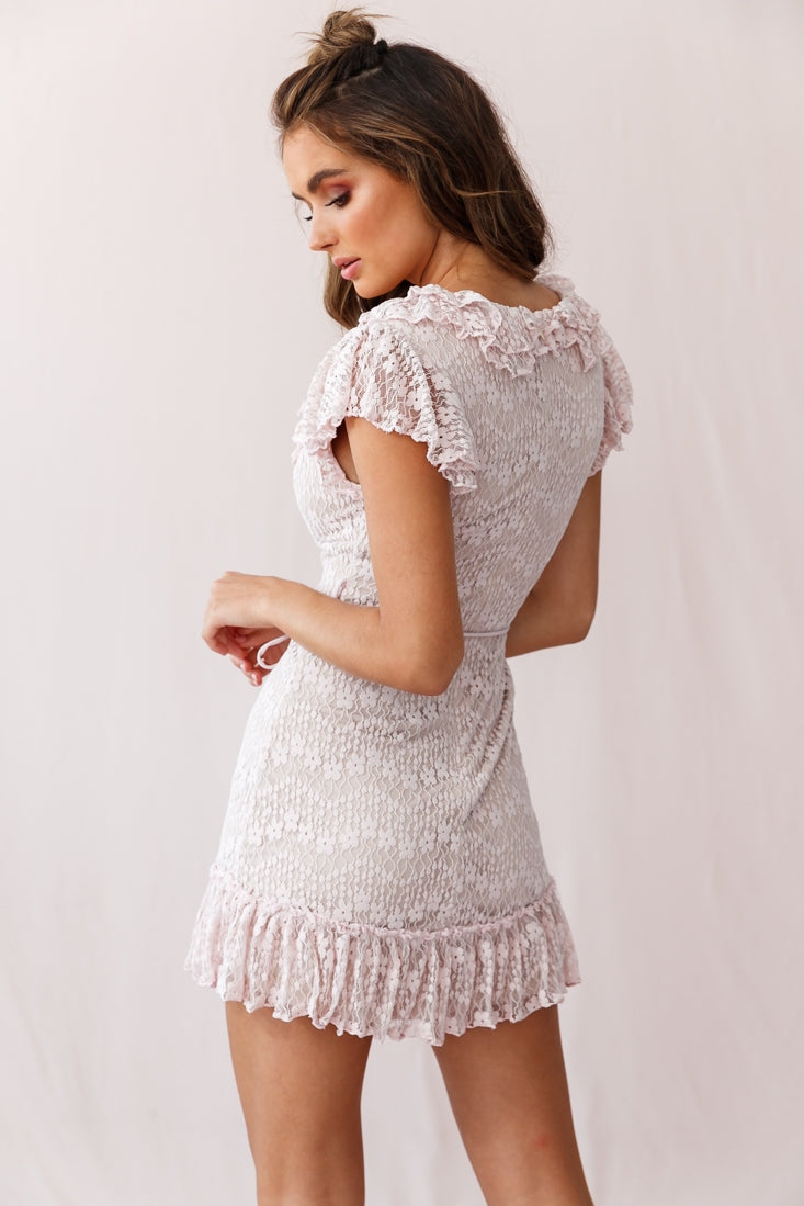 Hey pretty lady, you're causing quite a stir in our sweet, lace Florence dress! Fully lined, it features a beautiful floral lace overlay, ruffle trimmed neckline and hem, flutter sleeves and a separate string-tie belt. Team it with delicate gold jewelry and nude heels for a look we are loving.