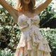 Flower Child Bust Tie Ruffle Trim Dress Floral Spring Print Champagne