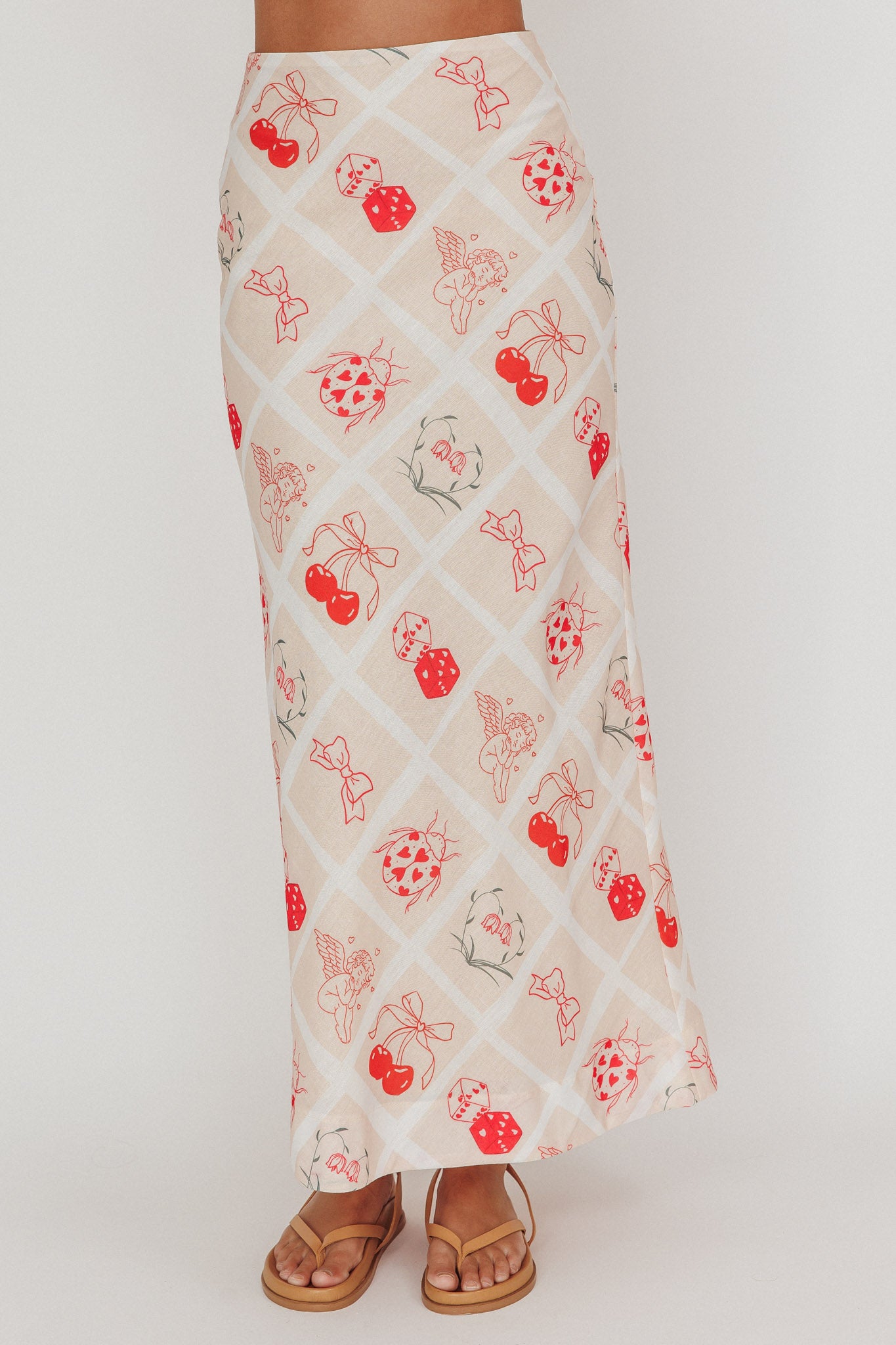 Flowering Romantic Print A-Line Maxi Skirt Beige