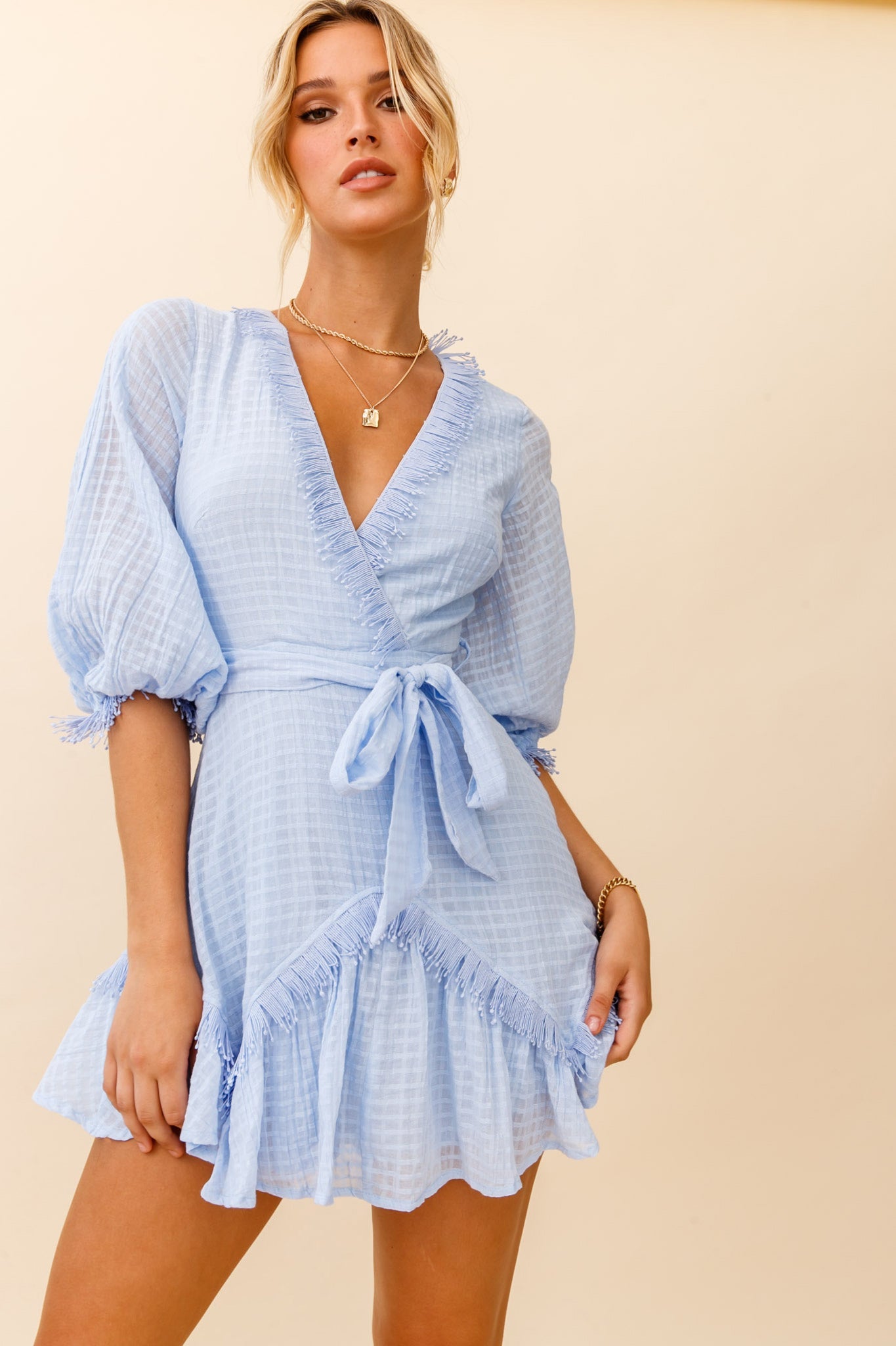 Flyin' Solo Fringe Trim Waist Tie Dress Steel Blue