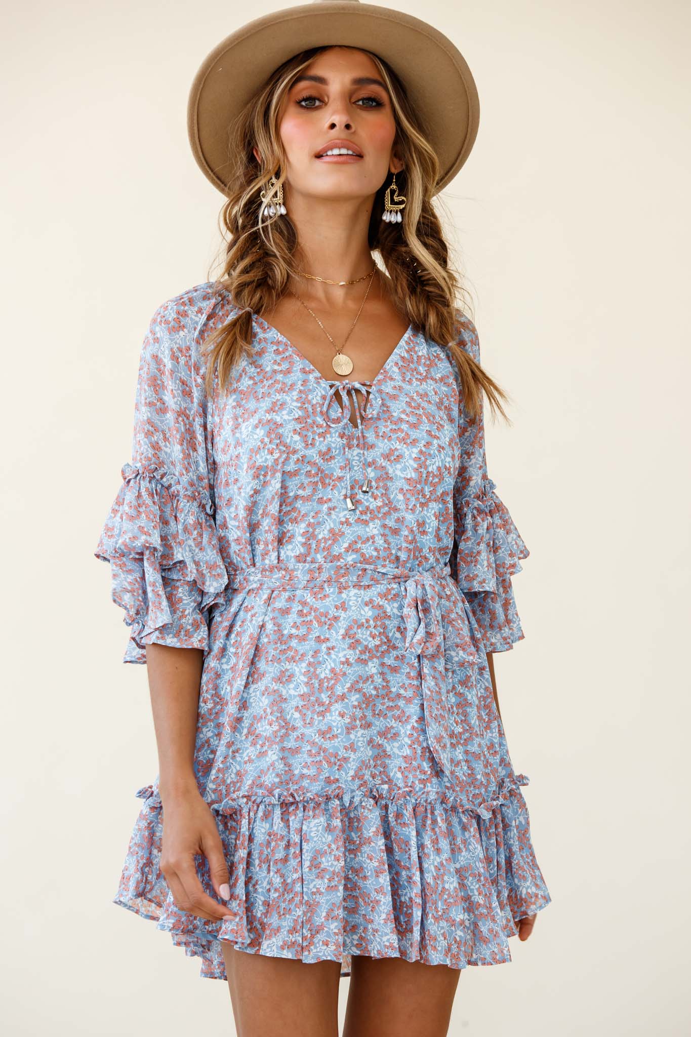 You'll look postcard-perfect in our Forever Sunshine dress. Featuring soft and floaty fabric and gorgeous flared, ruffle sleeves, this dress is ultra flattering and feminine. Perfect for lunch with your ladies, matchmaking your single friends and catching up on the latest goss. Team it with tan mules and a hat for a cute look we are loving.