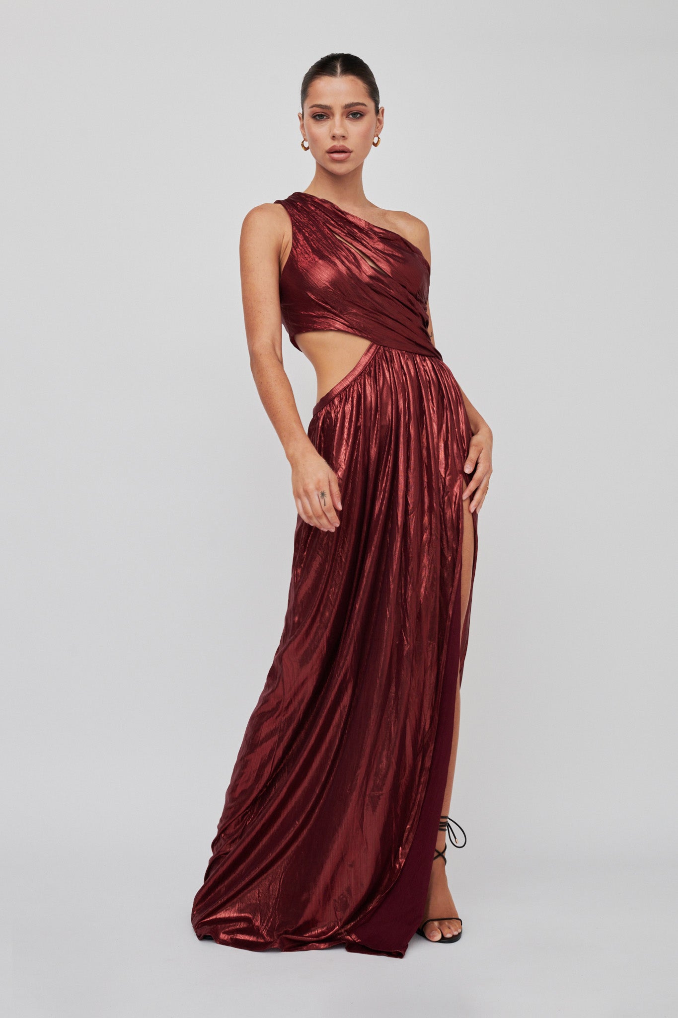 You'll look like you just stepped off the red carpet in our stunning Fortuna maxi dress. It features a gorgeous metallic fabric and one-shoulder design and is perfect for a special occasion or gala event. Team it with tie-up heels and a clutch for an unforgettable look.