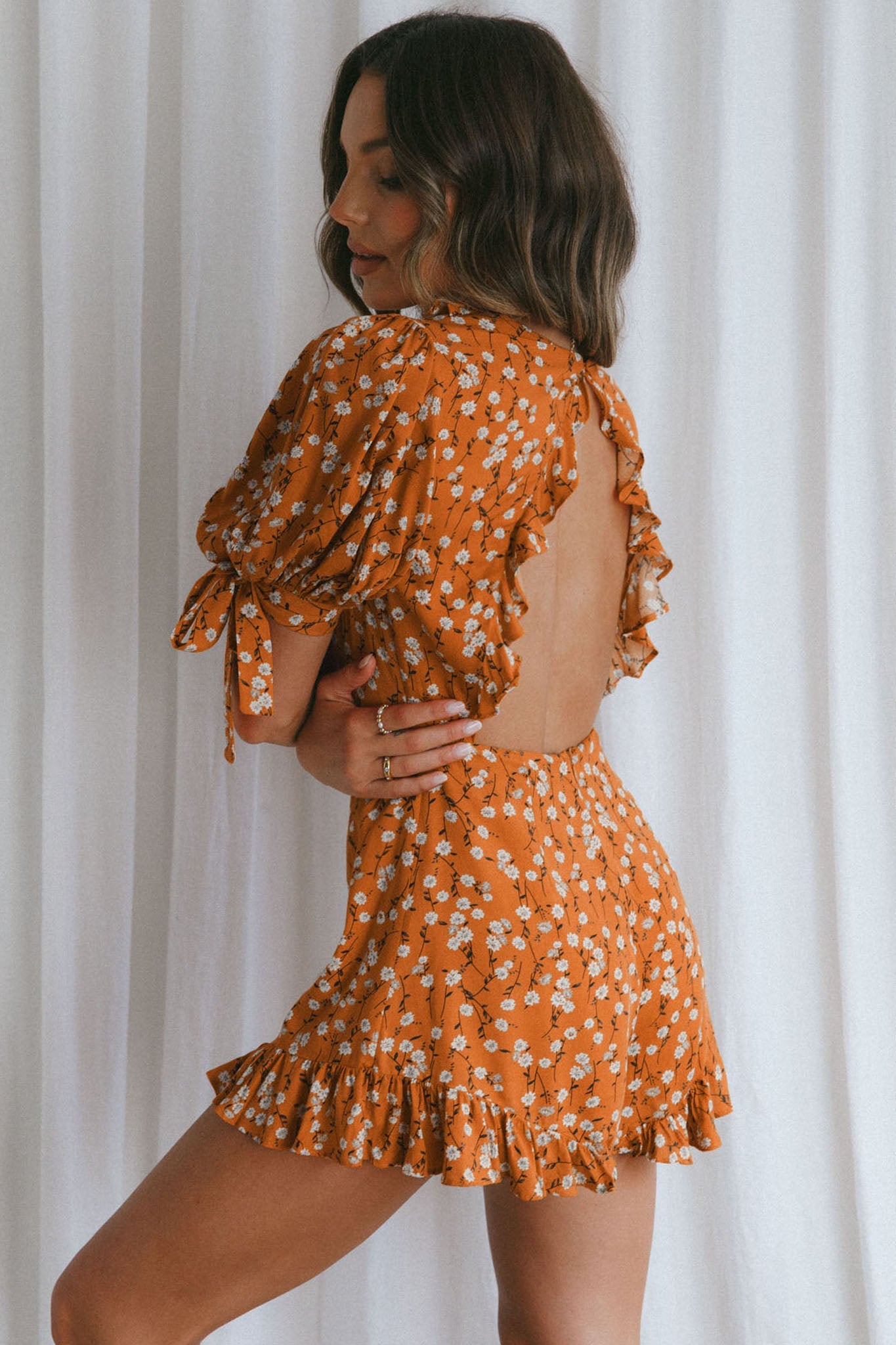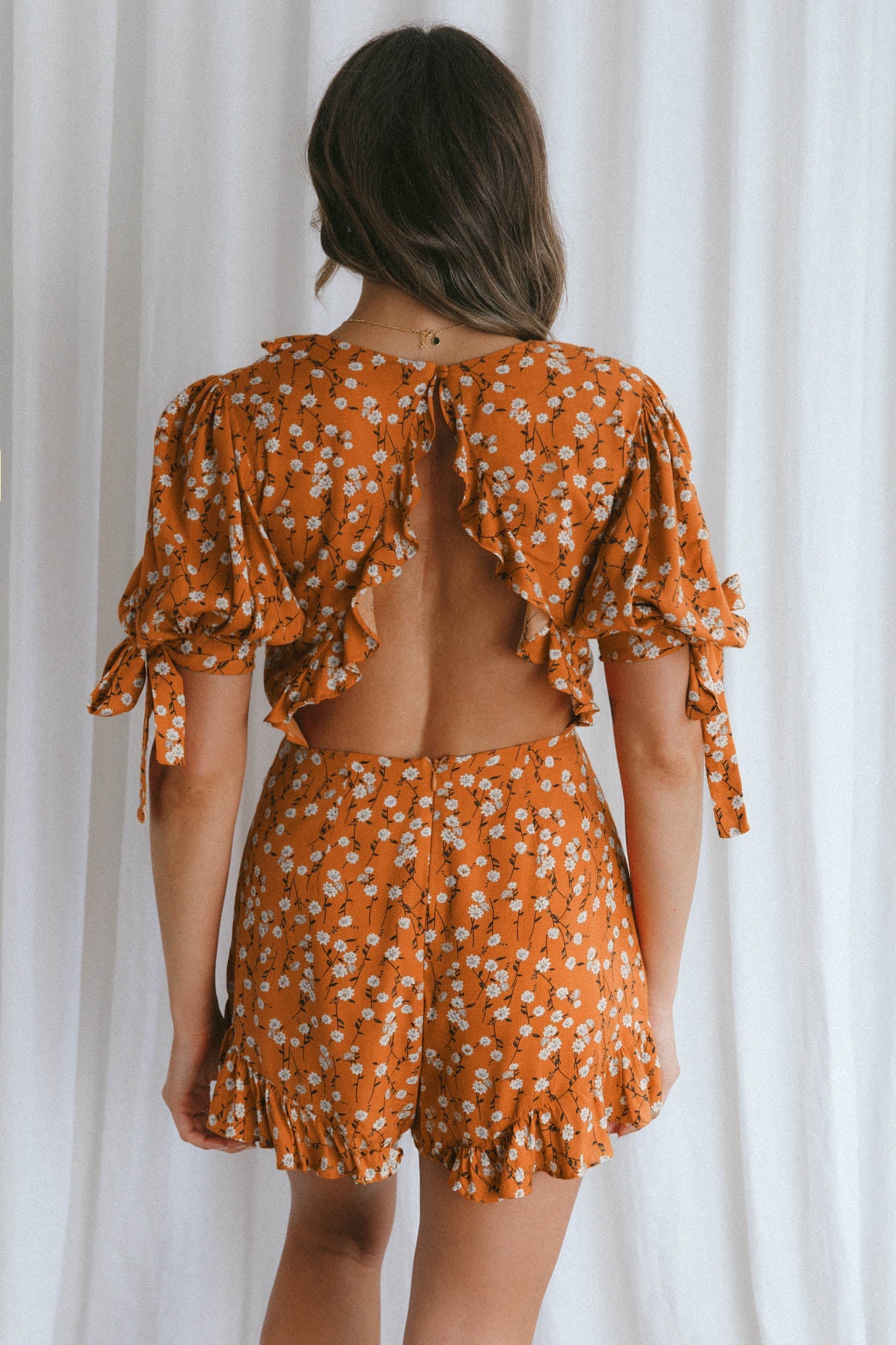 You'll cause a commotion in this super hot romper. We are all about that tied bust detail and the cut-out back is the icing on the cake. Perfect for showing off your new (fake) tan at a bbq pool party or a date night with bae. Team it with woven wedges and a basket bag.