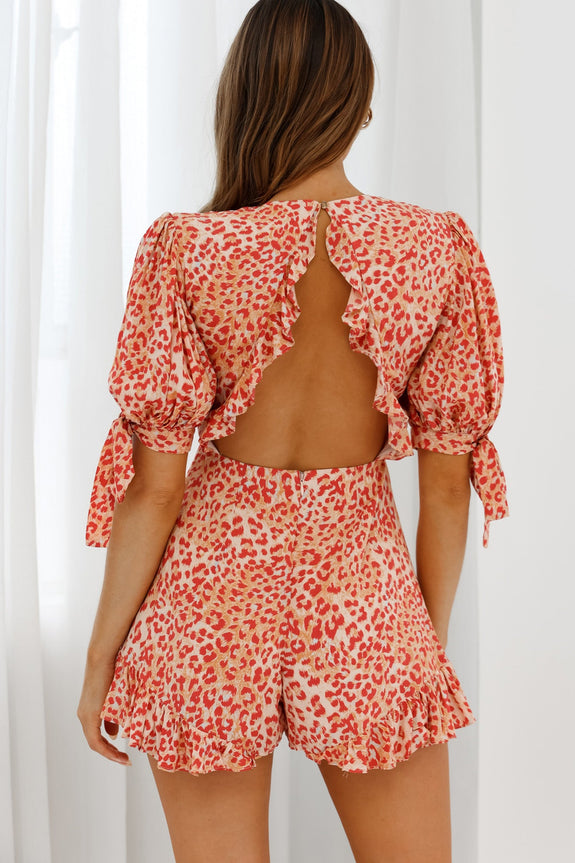 You'll cause a commotion in this super hot romper. We are all about that tied bust detail and the cut-out back is the icing on the cake. Perfect for showing off your new (fake) tan at a bbq pool party or a date night with bae. Team it with woven wedges and a basket bag.