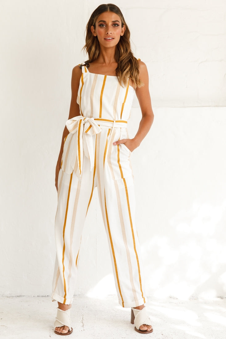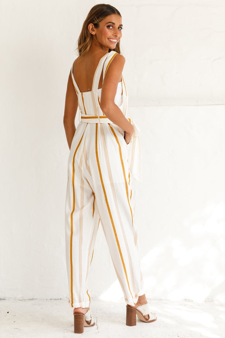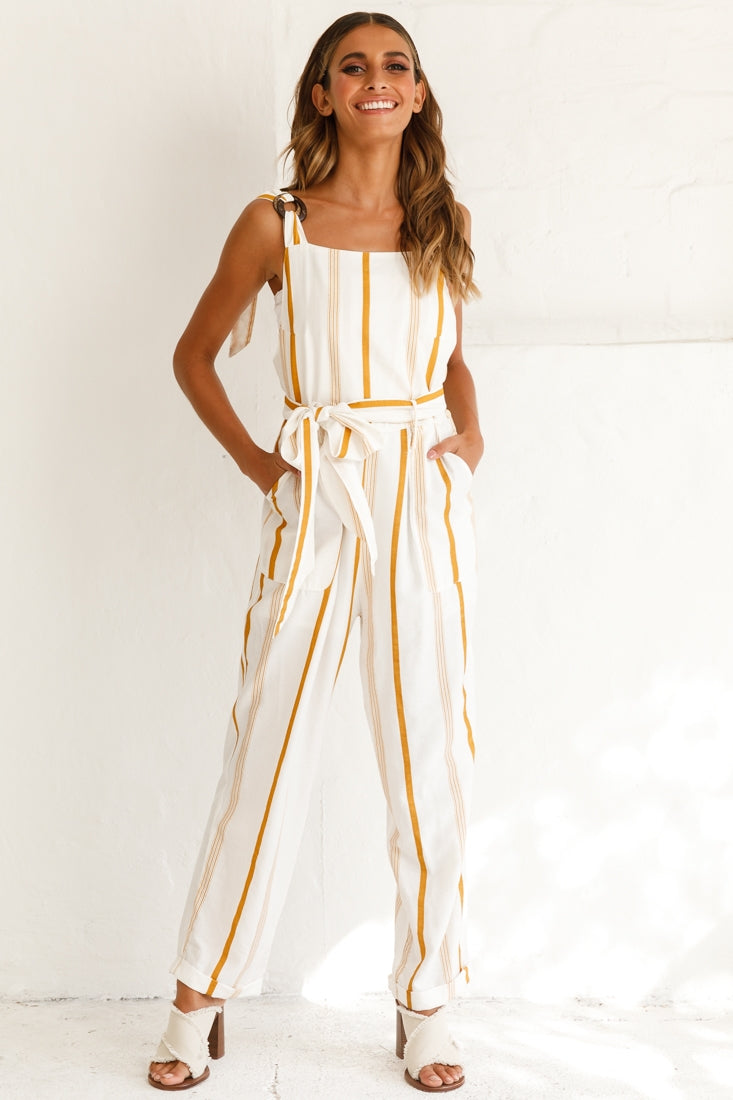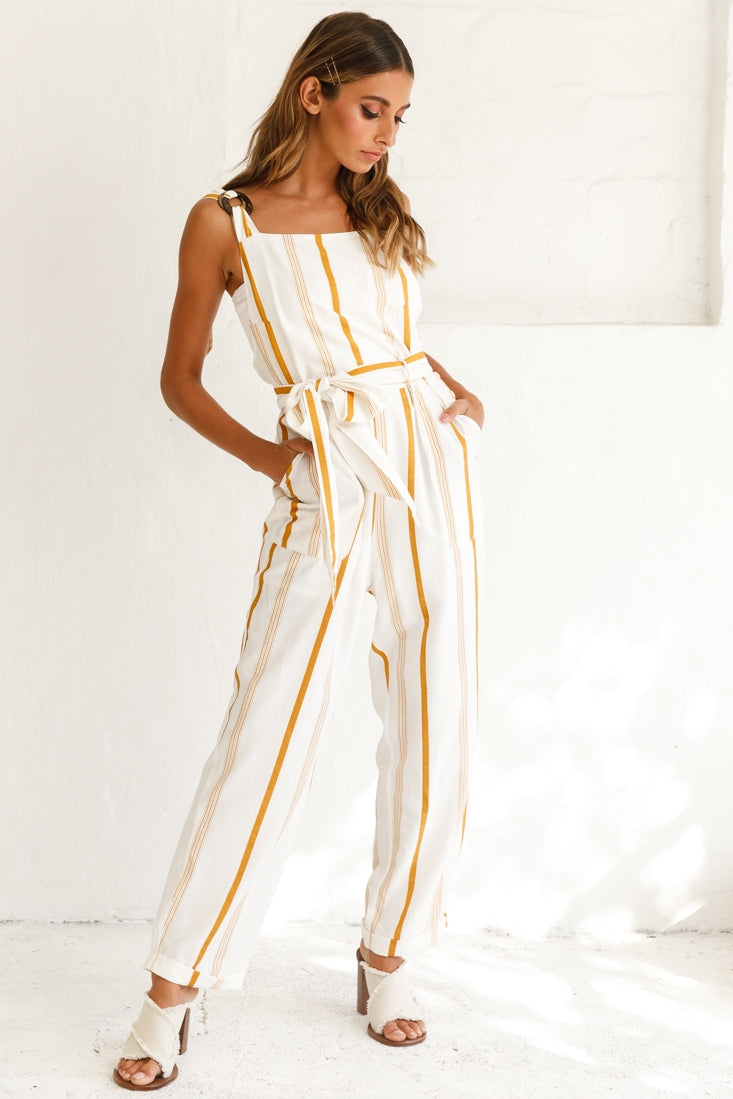 Every day will feel like a sweet, sunny day in our Fresno jumpsuit. Perfect for strolling the farmers' markets or coffee dates with your bff, it features an adorable pinafore style front, wide straps with wooden buckles, straight leg pant, front pockets and separate waist-tie belt. Wear it over a cute tee teamed with tennis shoes for a casual-chic look we are in love with.