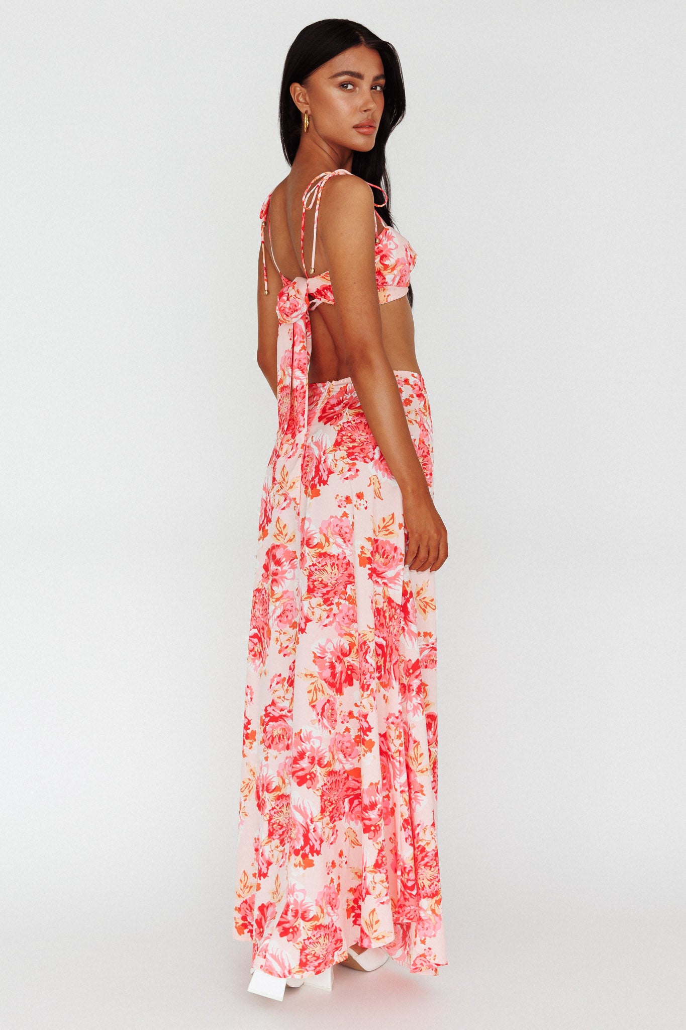 Make an entrance in our gorgeous Gabbi maxi skirt. Featuring a pretty floral print, it's perfect for dinner with your girls. Team it with its matching crop top and diamante heels for a look that's fit for a princess.