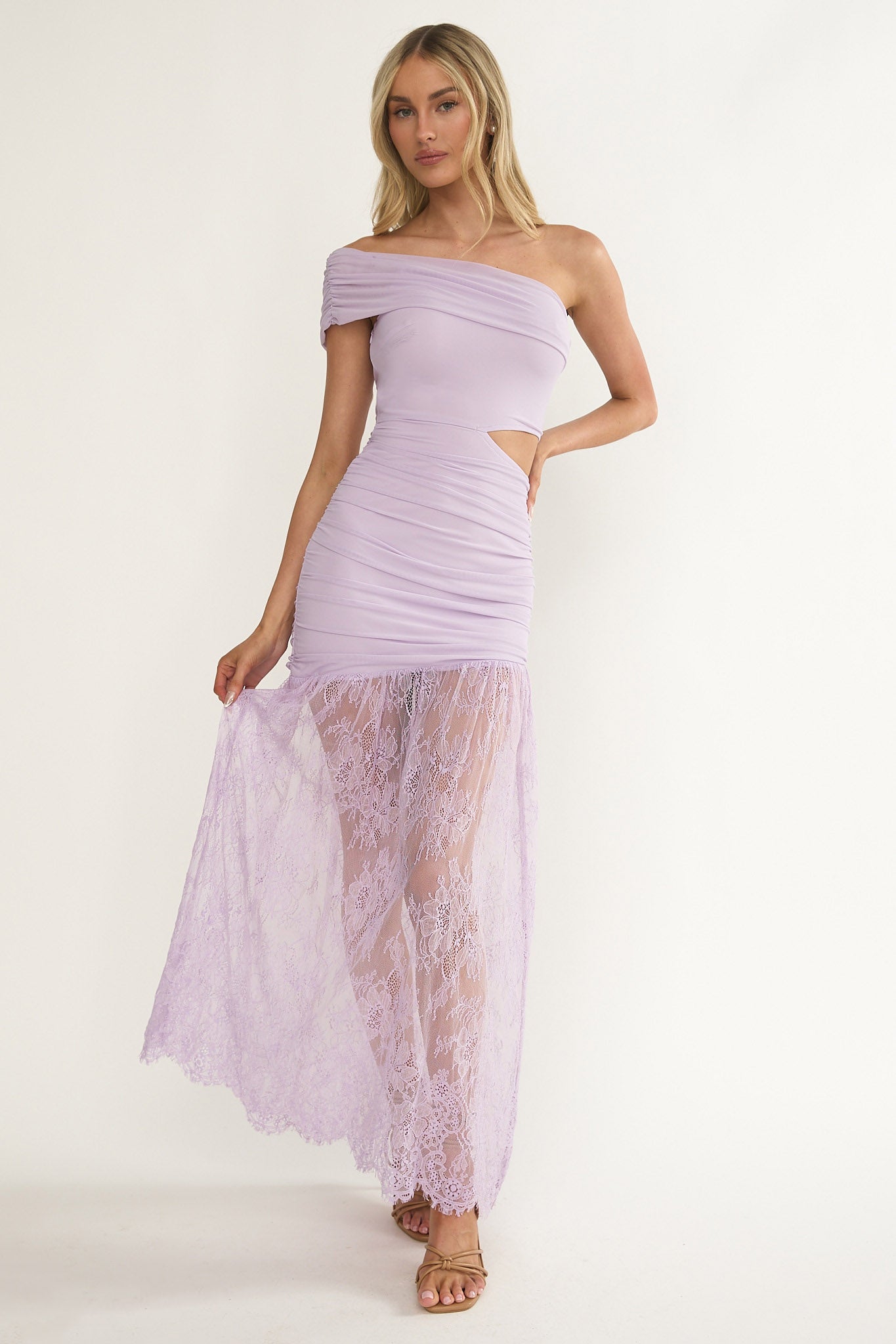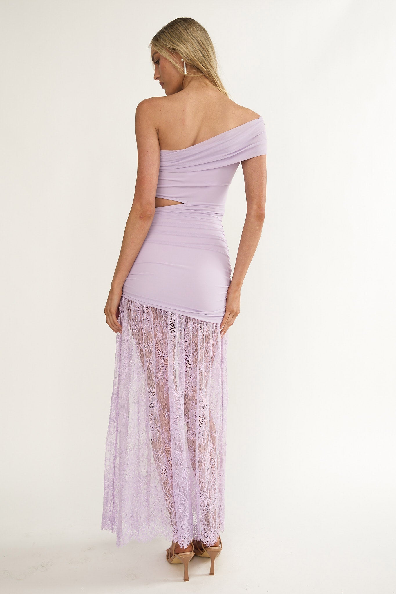 Gala Cut-Out Waist Lace Maxi Dress Lilac