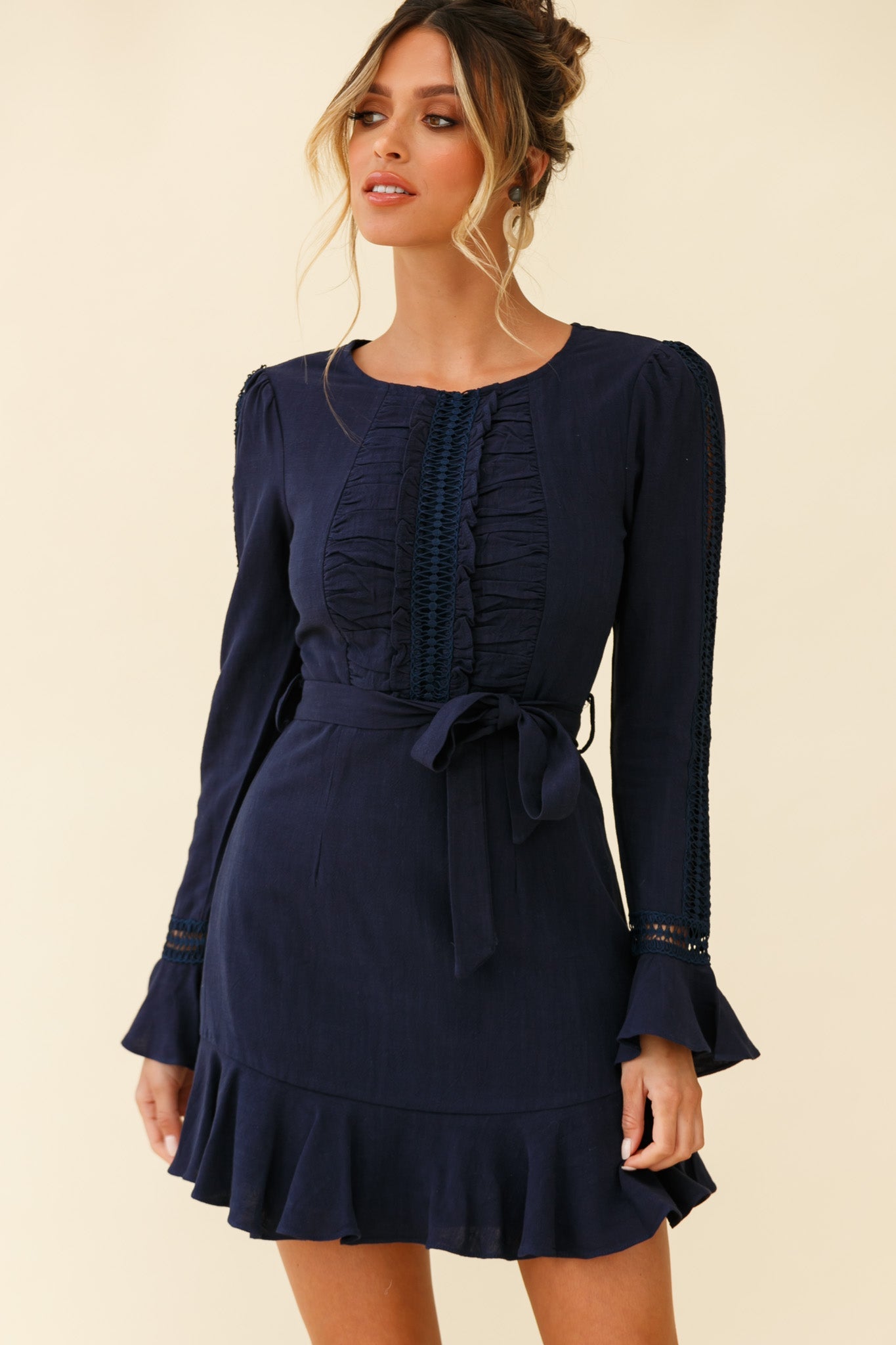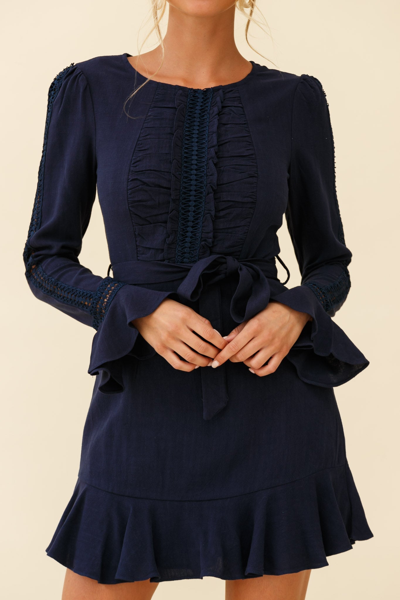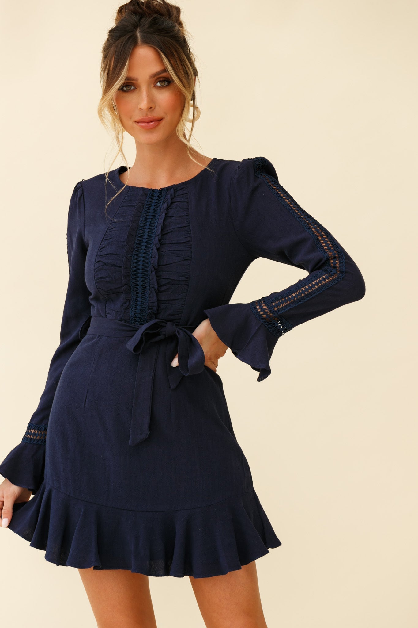 Make an entrance in our gorgeous Gardenia dress. Perfect for the office or weekend brunch dates, we are loving the frill and crochet detail in the bust and sleeves! Team it with tan mules and a tote for a look we are loving.