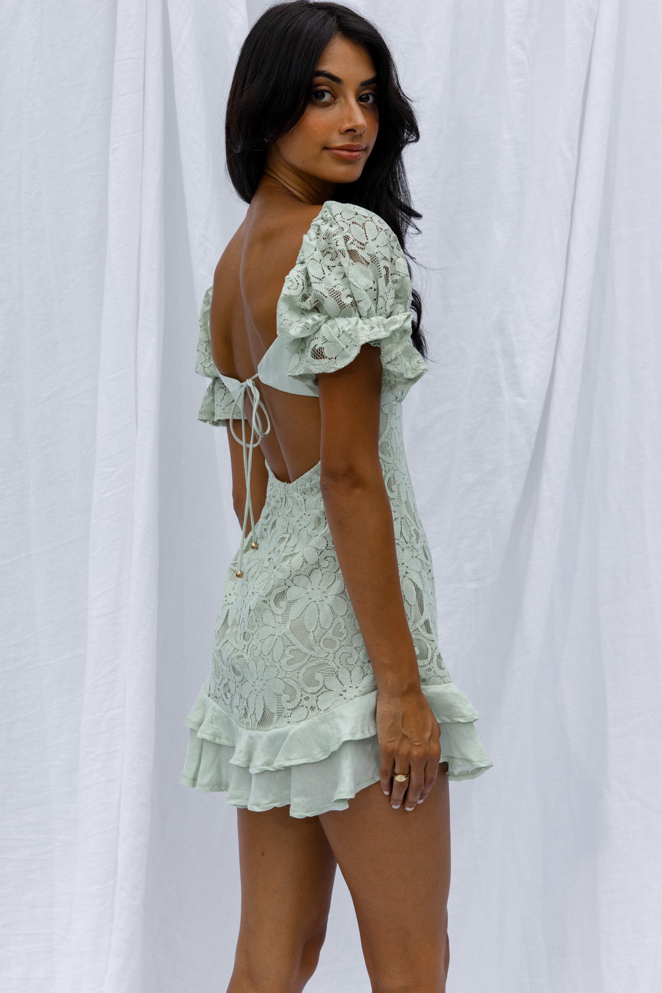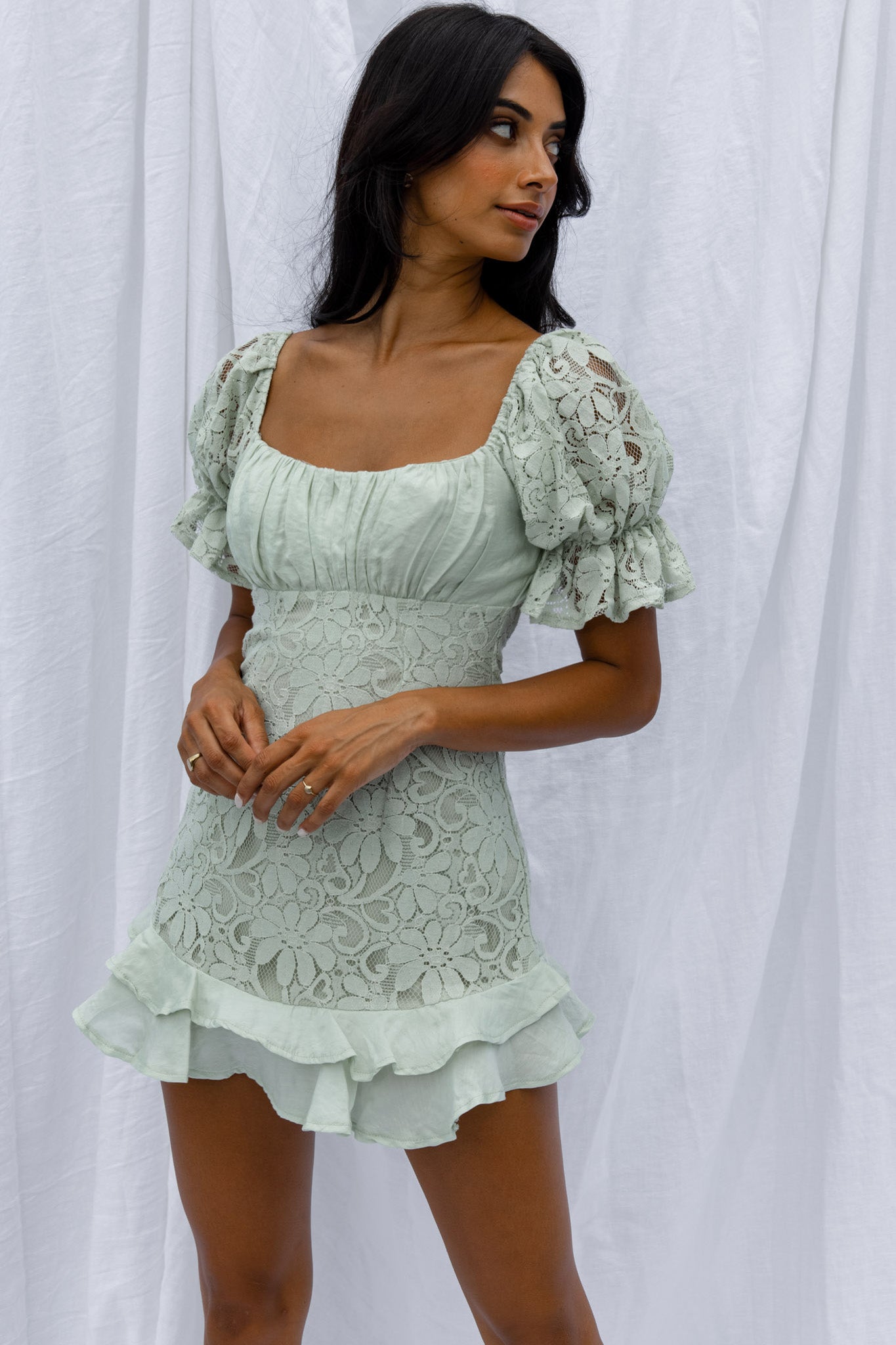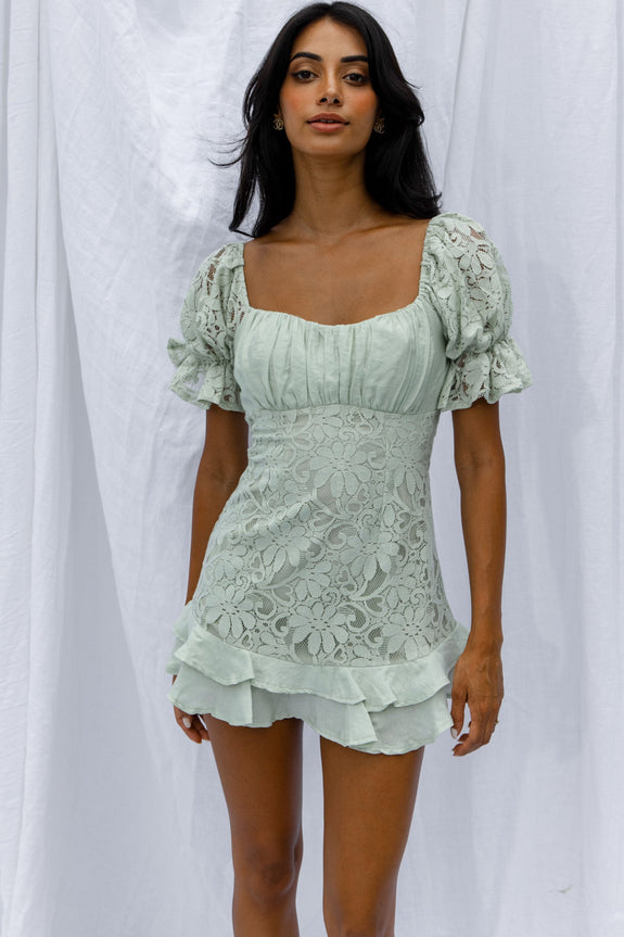 Georgia Peach Puff Sleeve Double Frill Hem Lace Dress Mint