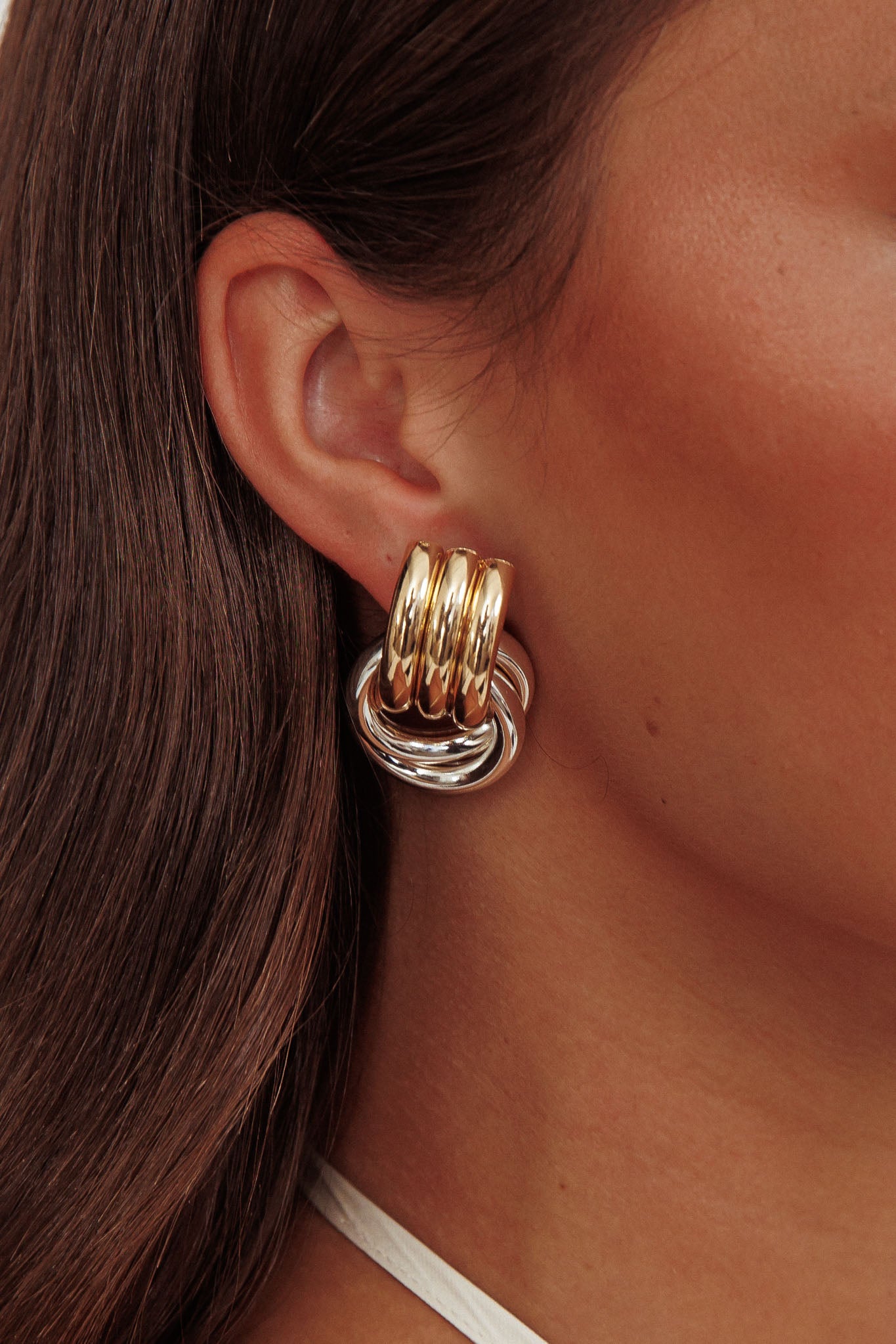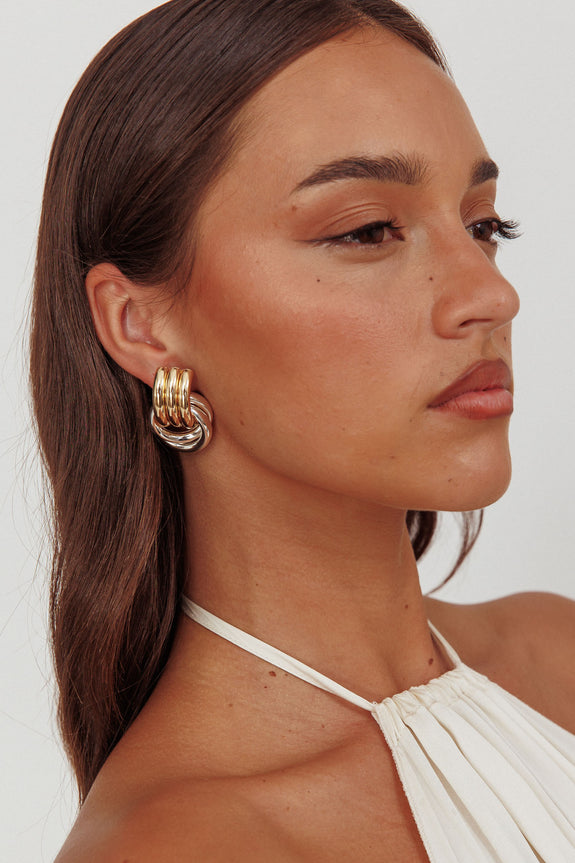 Elevate your look with our gorgeous Georgina earrings. They feature a pretty two-toned design and are perfect for a date night or glam event. Team them with our Isabella dress for a look that is sure to get you noticed.