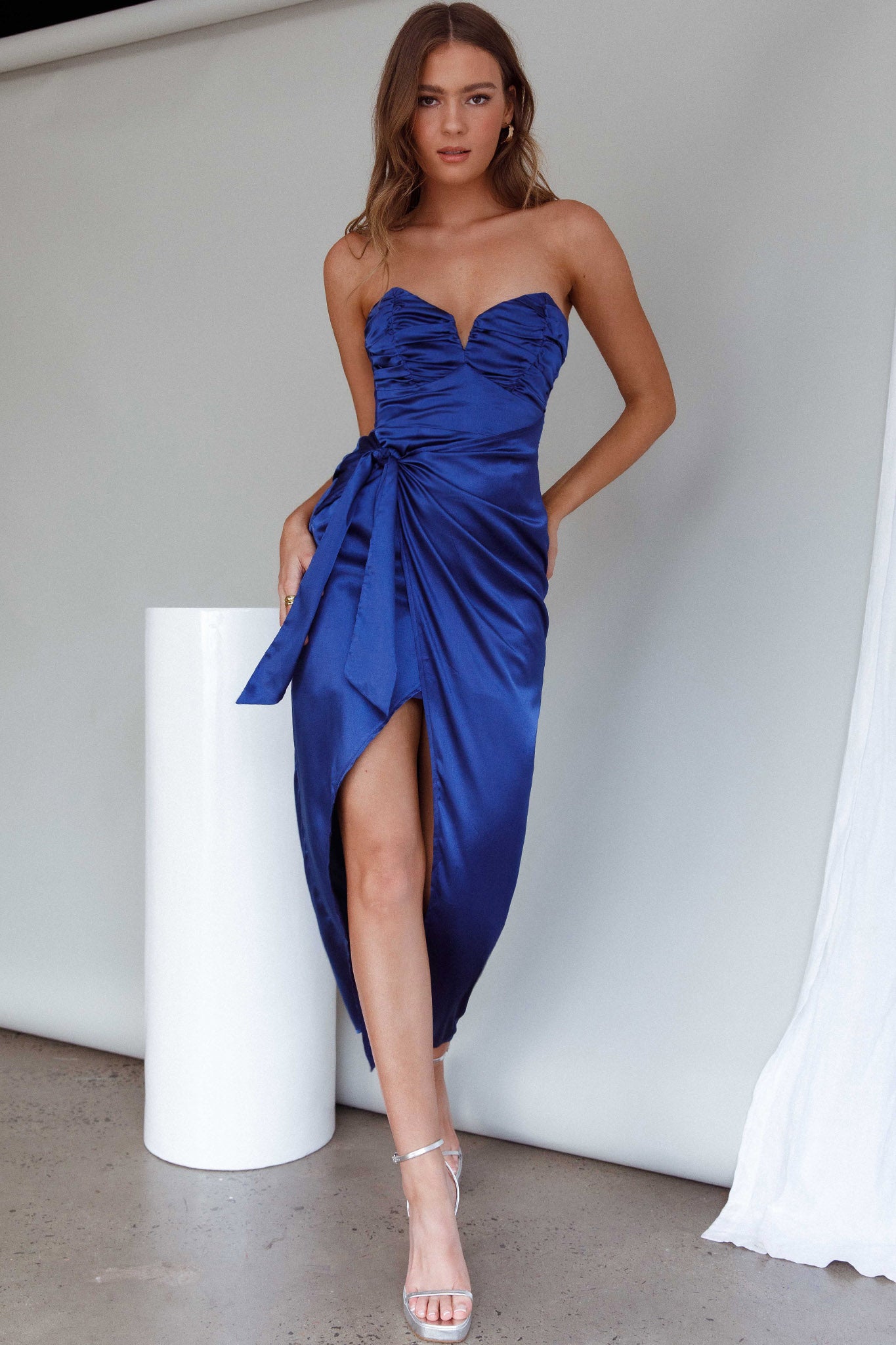 Gianna Strapless Ruched Bust Midi Dress Navy