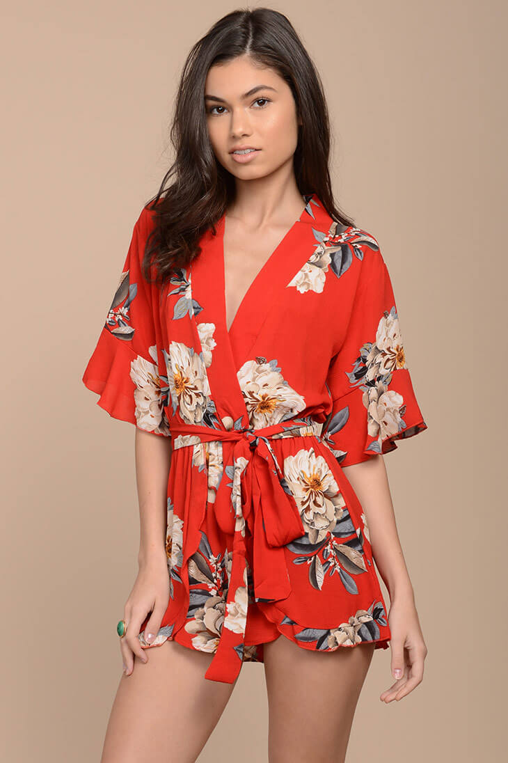 What could be better than a boho kimono? The Jade Floral Boho Romper gives a wrap illusion and delicately colored floral design. Pair with slip on sandals to stay casual and cool.