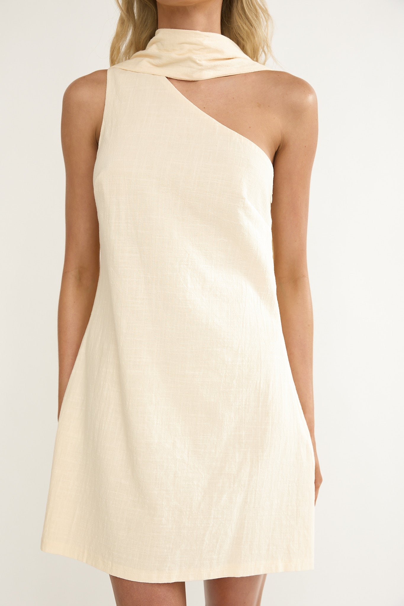 Make a statement in our pretty Gizelle mini dress. We are in love with its chic scarf detail and on-trend, one-shoulder design. Wear to brunch with your girlies teamed with strappy heels and a tote for an It Girl look.
